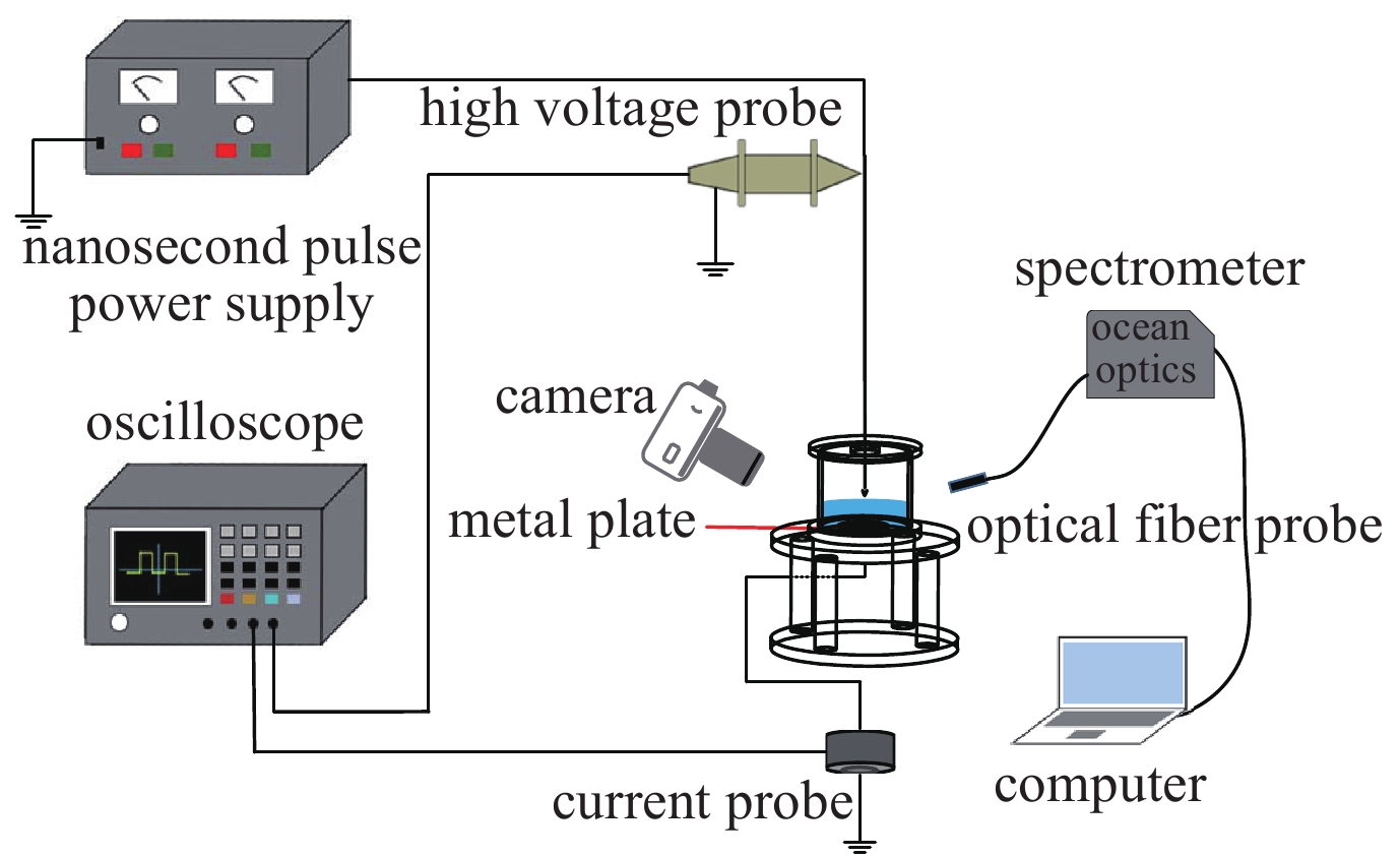 In this paper, a nanosecond pulse power supply is employed to excite the gas-liquid discharge in atmospheric air, and the discharge characteristics, plasma characteristics and the composition of activated water under different pulse parameters are studied. The results show that the discharge consists of three stages in one pulse period, among which the two discharges that occur during the pulse duration and the falling edge are stronger, and the discharge on the rising edge is weaker. When the pulse voltage increases, the discharge current, average power, luminous intensity and spectra intensity all gradually increase. When the frequency increases, the discharge current is almost unchanged, but the power increases significantly, the discharge luminous and spectra intensity also increase. The increase of the voltage rising edge time will weaken the discharge intensity, and the corresponding luminous intensity and spectra intensity will be weakened. The increase of the voltage falling edge enhances the discharge, and the luminous intensity and emission spectra intensity increase. When the pulse voltage, frequency and falling edge time increase, the concentration of H2O2,\begin{document}${\rm{NO}}_2^ - $\end{document} ![]()