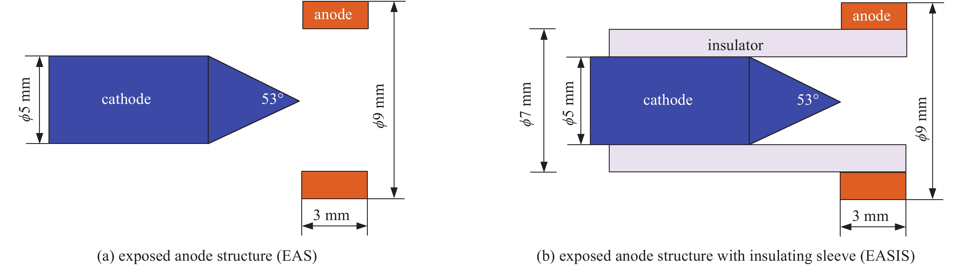 A nanosecond pulse generator with alternating output voltage polarity is developed, and the study of plasma generated by bipolar nanosecond pulse discharge is carried out. The generator first cuts DC voltage into a voltage pulse through solid-state switches IGBT, and uses a saturable pulse transformer to boost the voltage and shorten the pulse rising edge. The generator can output two pulses with opposite polarities in one cycle, and the timing can be flexibly controlled. By choosing devices with proper parameters, two bipolar nanosecond pulse generators with optimized output parameters are developed: ① The peak voltage is 10 kV, and the pulse repetition frequency in burst mode is 500 kHz (interval between positive and negative pulses is 2 μs), with continuous repetition frequency of 1 kHz; ② The peak voltage is 25 kV, with 200 kHz burst frequency, and the continuous frequency is 600 Hz. The operating performance of the generators is tested, and it is found that the temperature of the generators tends to increase to a stable point during long-duration(more than half an hour) operation. When the 10 kV generator continuously works at 1 kHz, its highest temperature is 50.5 ℃. For the 25 kV generator continuously working at 600 Hz, the highest temperature point is 60 ℃. The result of using the generators to drive the wire-to-plate electrode and the surface dielectric barrier discharge proves that the generators can be used to generate large-area plasma in atmospheric air.