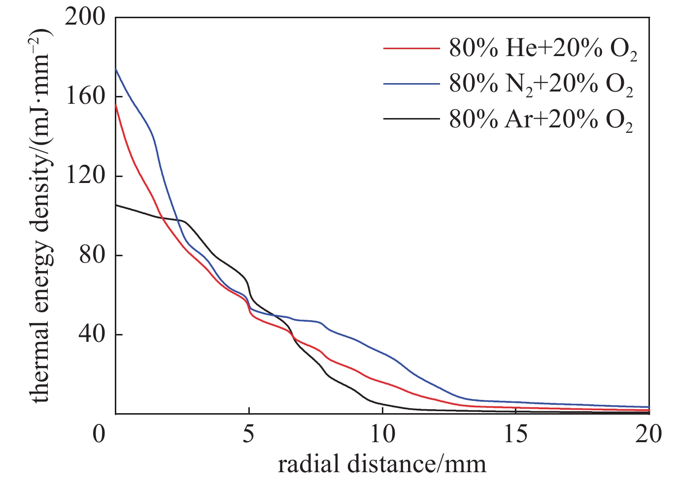 Oxygen is a kind of indispensable component in graphite-electrode spark-gap switch, and it is used to oxidize the graphite vapor formed by the graphite electrode under the impact of high-temperature arcs to prevent the graphite vapor from condensing into solid powder after the arc is extinguished, thus to avoid damage to the switch. To increase the oxidation ratio of the graphite vapor, the influence of background gas composition and oxygen concentration on graphite oxidation reaction is studied in this paper. The effect of dilution gases N2, Ar, and He on characteristics of the oxidation reaction are studied. Meanwhile, on the basis of the traditional air-like gas (80%N2+20%O2), the carbon oxidation ratio in the case with 40% and 60% oxygen concentration are studied. According to the thermodynamic parameters and transport coefficients of different gases, the arc temperature characteristics are obtained through the magnetohydrodynamic calculation. The thermal energy intensity at the interface between the arc and the electrode is used as the basis for evaluating the mass loss rate of the graphite electrode. Experimental results show that as the oxygen concentration increases, the oxidation ratio of graphite vapor gradually increases. However when the oxygen concentration is higher than 40%, there is a risk of combustion of the graphite electrode. When the oxygen concentration is kept at 20%, the mass-loss rate of the electrode is smaller when Ar is used as the dilution gas, and the carbon vapor is oxidized more fully in the arc. This indicates that compared with the traditional insulation gas, replacing the dilution gas with Ar or increasing the oxygen concentration to around 40% can both improve the carbon-oxygen reaction efficiency and reduce the residual carbon impurities of the graphite-electrode spark-gap switch.