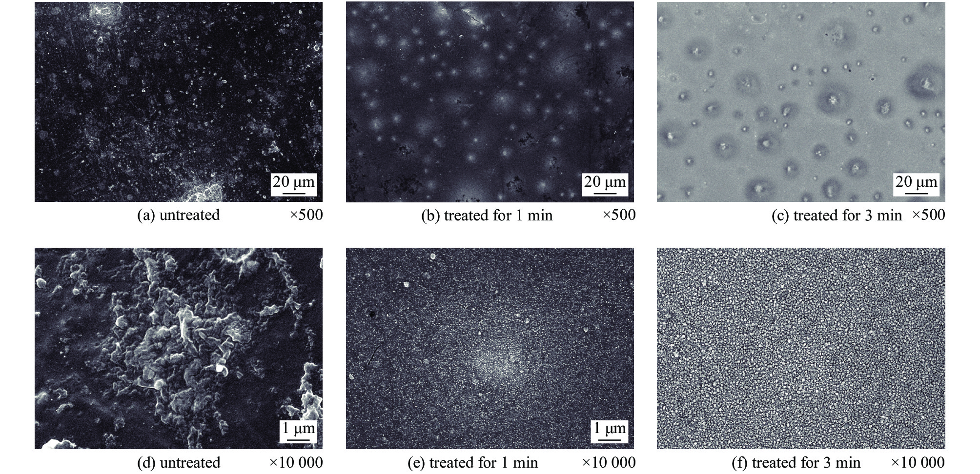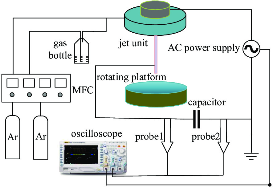 To improve the effect of plasma on the surface modification of polymer materials and optimize the hydrophilic treatment conditions, the hydrophilic modification of polypropylene (PP) by AC and nanosecond pulse argon dielectric barrier discharge (DBD) was studied. The discharge characteristics of AC DBD and nanosecond pulse DBD were systematically compared by using electrical and optical diagnostic.The results show that the DBD excited by nanosecond power supply has higher instantaneous discharge power, better discharge uniformity and higher energy efficiency. The optimal content of H2O in hydrophilic treatment of PP was determined by measuring the intensity of OH. The hydrophilic modification of PP was carried out by using DBD driven by AC and nanosecond pulse power supply, respectively. The water contact angle of PP was measured under different conditions. The surface physical morphology and chemical composition of PP were analyzed by atomic force microscopy (AFM) and Fourier transform infrared spectroscopy (FTIR).The result shows that, after DBD treatment, the water contact angle of PP surface was obviously reduced, the surface roughness increased significantly, and the number of hydrophilic oxygen-containing groups, hydroxyl (−OH) and carbonyl groups (C=O), increased significantly. Compared with the AC power supply treatment, the modification effect of nanosecond pulse DBD treatment is obviously better, by which the water contact angle of the treated material surface is about 5° lower and the surface roughness is larger. In addition, the water contact angle of PP was further reduced about 4° and the surface roughness was significantly improved with the addition of water vapor. The results have significant value for optimizing the experimental conditions and treatment effect of surface modification of DBD polymer materials.