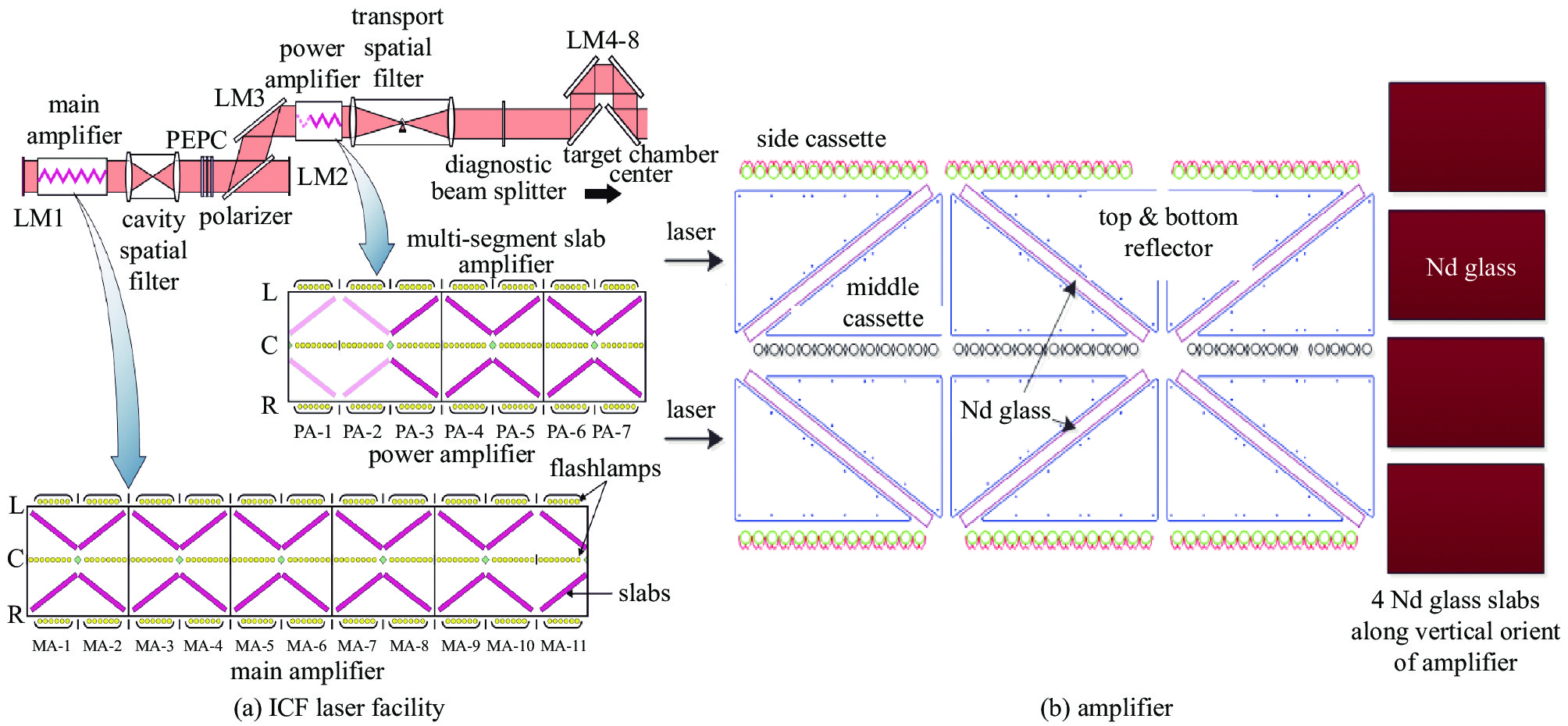 One of the main problems occur during inertial confinement fusion (ICF) laser facility’s long-term operation is the gain degeneration of the 400 mm aperture slab amplifier,which will affect the output of the facility and the laser beam quality. A study on gain degeneration causing by several factors was carried out and a normalization theory model from all the factors has been built. The test was accomplished on two groups of 400 mm aperture, 4×2 composition multi-segment slab amplifier with each group includes 9 slabs. The gain degenerating rate was about 10.2% after 10 years, 3 000 shots of work which is in accordance with the theoretical predication. A maintance project for the large aperture slab amplifier has been drawn up to keep the gain degeneration less than 1.5% during long-term operation of the ICF facility.