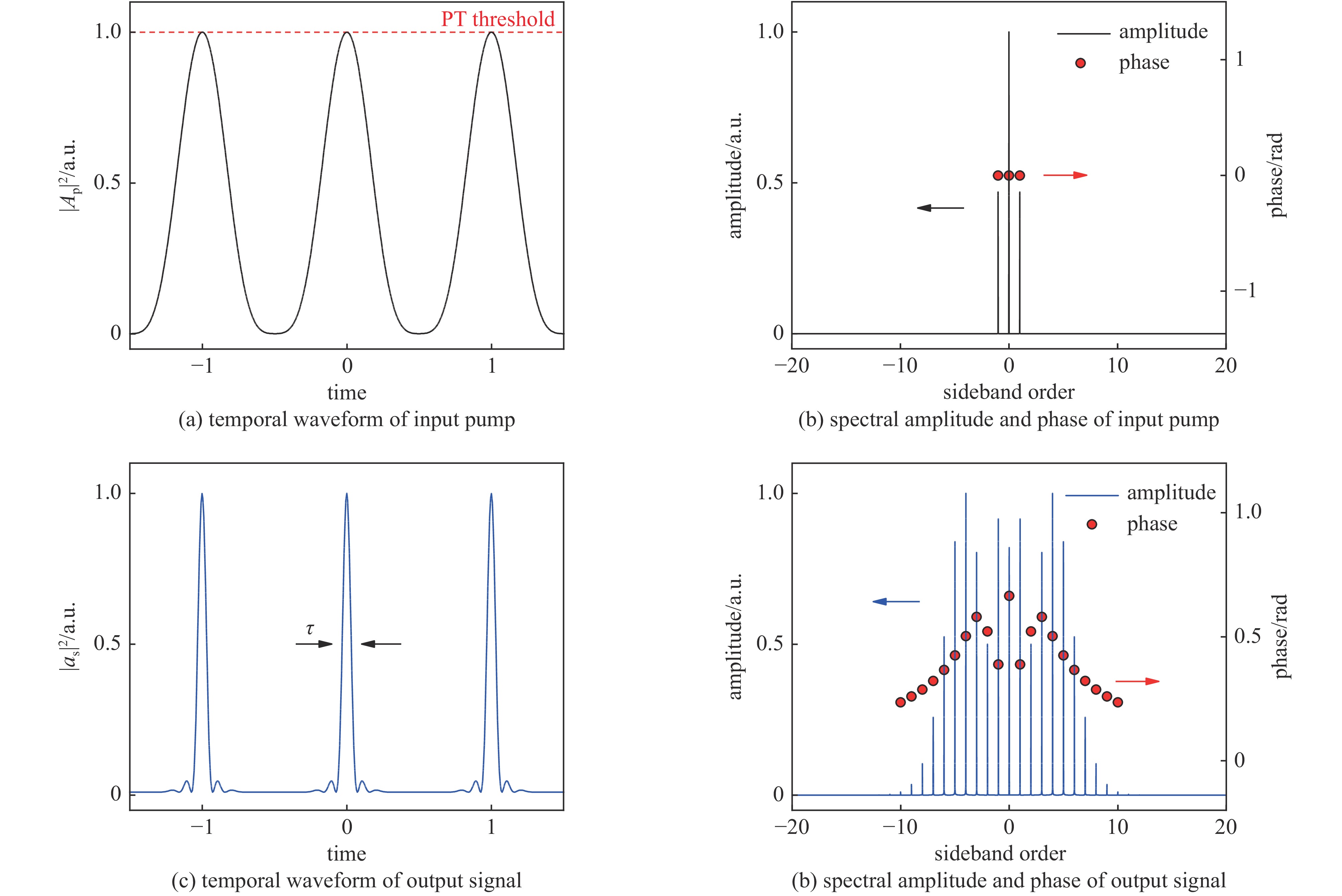 This paper demonstrates that the single crystal optical parametric amplification process (OPA) satisfies spectral parity-time (PT) anti-symmetry under specific boundary conditions, and the PT symmetry threshold point exhibits a gain jump property. For an OPA with phase mismatch, the PT symmetry of the system can be controlled by instantaneous adjustment of the pump intensity. Based on this property, this paper constructs an ultrafast optical switch, which can combine with amplitude modulated pump to directly convert continuous laser into an ultrashort output pulse sequence. On the other hand, the optical switch can be used for further pulse compression and is promising to be used as an ultrashort mid-infrared seed source. The proposed scheme is easy to directly generate ultrashort pulse sequence with repetition rate higher than 10 GHz because the optical resonant cavity is not required.