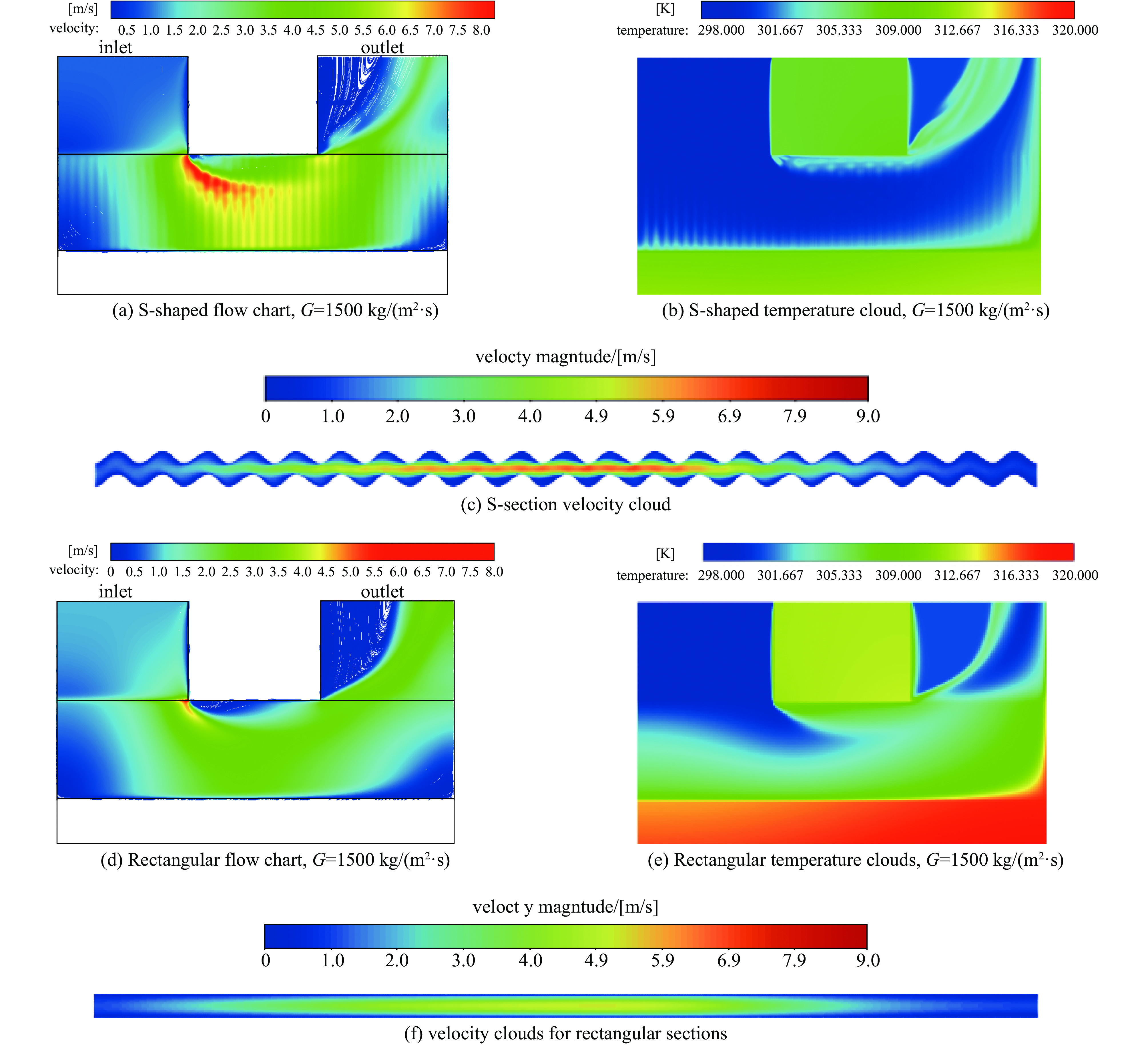 To solve the heat dissipation problem of high heat flux density solid-state laser, a set of micro-compact embedded manifold S-shaped microchannel heat sink was developed using the MEMS technology and the microchannel/heat source co-design method. The heat exchanger uses continuous S-shaped microchannels and the manifold is used to form tiered and segmented flow. Experiment was conducted, using HFE-7100 as the cooling medium. Results show that the heat sink can dissipate 625 W/cm2, with a local maximum temperature of less than 100 ℃ and an average temperature rise of less than 45 ℃. Compared with the traditional manifold rectangular microchannel heat sink, the heat dissipation performance of S-shaped microchannel increased by 12%, but the flow resistance increased by about 56%. Numerical simulation methods were used to evaluate the structural parameters of the S-shaped microchannel heat sink’s heat dissipation ability and flow resistance by changing the amplitude and wavelength of the S shape according to the average temperature of the heating surface, average Nusselt number of the heat transfer surface, pressure drop, and comprehensive performance factor, to find the optimal structure design parameter combination of the S-shaped microchannel. The results show that the comprehensive performance factor of the heat sink has an optimal value under a specific S-shaped configuration, which will be used in subsequent studies.
