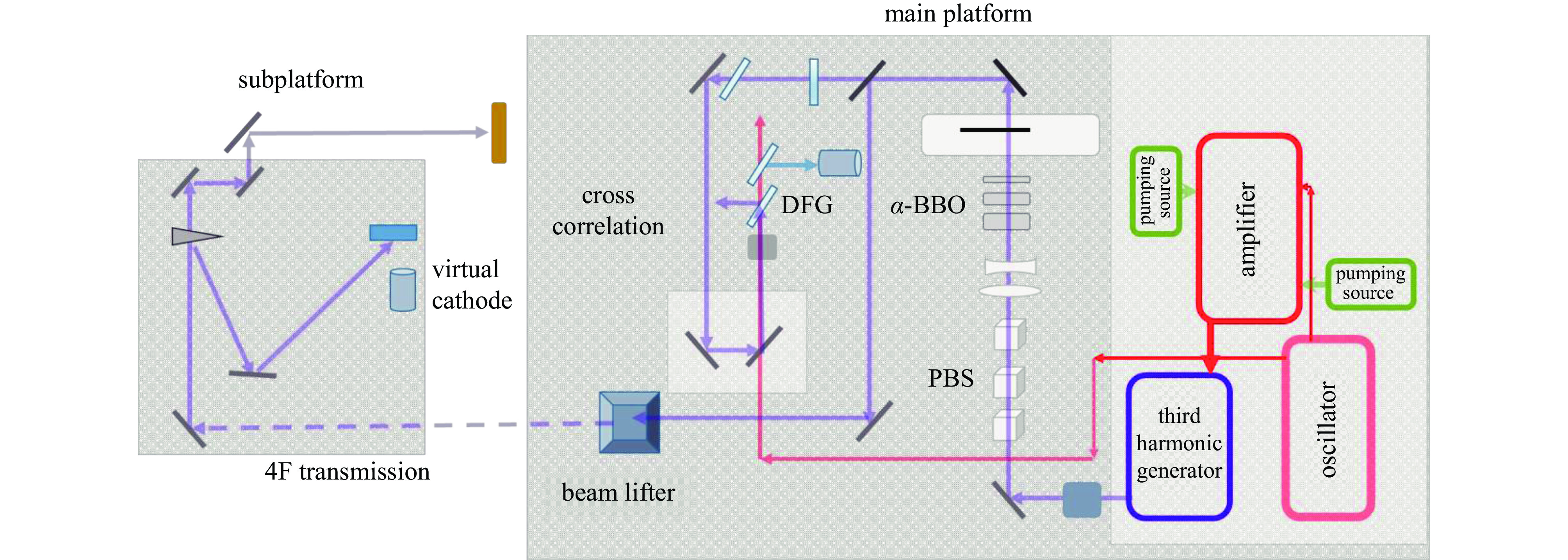 In photocathode electron gun system, the space-time shaping of the laser is one of the important parts to achieve low emittance of the beam. Based on the C-band photocathode electron gun test platform of the Southern Advanced Photon Source pre-research project, the layout and testing of the drive laser system are introduced in this paper. A 266 nm laser with an initial RMS pulse length of 160 fs is first used as the driving laser in the test platform in China. The longitudinal time of the laser pulse is shaped by the pulse time delay of the birefringent crystal, and the transverse beam is realized by an adjustable diaphragm with multiple apertures. After shaping, the laser platform can provide a Gaussian pulse with a longitudinal RMS length of 160 fs and 420 fs, and a flat-top distributed pulse laser with FWHM of 5 ps. According to the laser test results, the influence of different pulse distributions on beam emittance evolution and pulse distribution is briefly analyzed in this paper. It provides not only a guidance for the photocathode electron gun commissioning, but also support for further research on the effect of initial pulse distribution on space charge force.