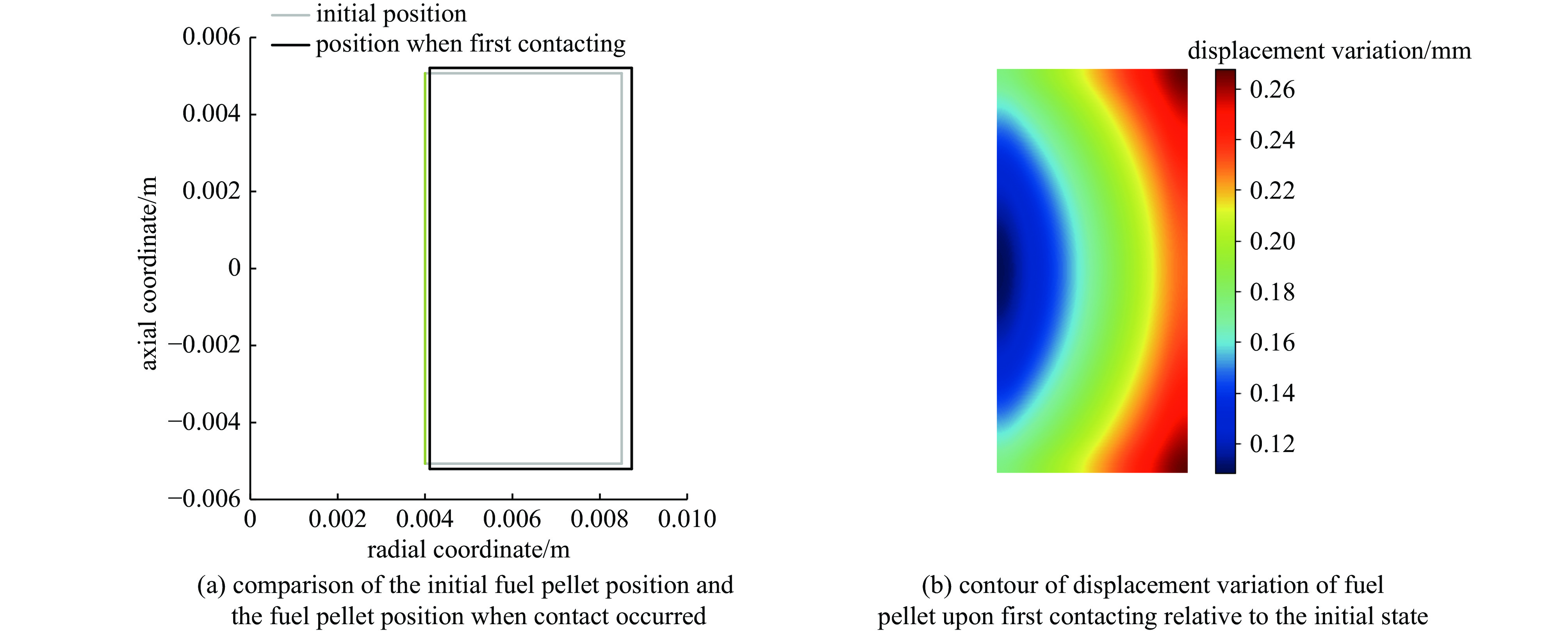 To predict the safety performance of fuel elements during operation of a space thermionic reactor, this study developed a mechanical performance analysis program for fuel elements, and conducted high-precision simulation of stress, strain, and geometric deformation for the multi-layer cylindrical TOPAZ-II thermionic fuel element. The program takes into account the irradiation swelling of nuclear fuel under high-temperature radiation environment, and analyzes the mechanical response of the fuel pellet-emitter after contact, thereby quickly and accurately solving the mechanical state of the fuel pellet and emitter, to provide accurate prediction of the performance during operation of the space thermionic reactor. The results indicate that in normal operating conditions, the fuel of a space thermionic reactor undergoes significant swelling effects, which causes deformation that can lead to potential safety hazards such as reduced thermal-electric conversion efficiency and component failure.