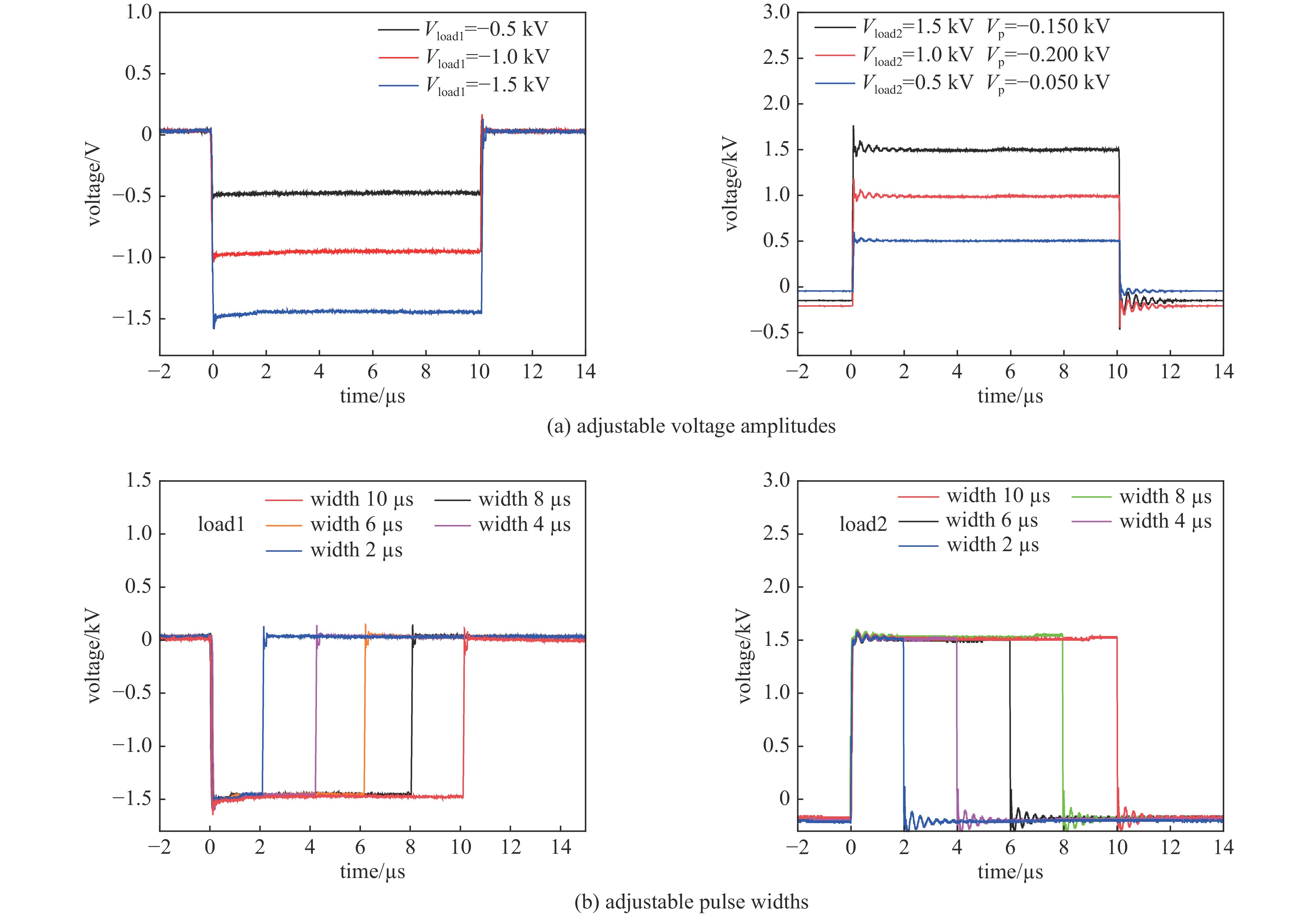 The influence of electric field penetration on mass spectrometer can be improved by adjusting the reverse bias voltage to improve the resolution of mass spectrometer. To meet the different output waveform requirements of mass spectrometers, this paper proposes a pulse generator that can simultaneously output two pulses of the same voltage amplitude and with opposite polarities, and a negative DC bias voltage is coupled to the high-voltage positive pulse. Only one charging power source is needed to generate both positive and negative pulsed electric fields. This paper analyzes the synchronous driving effect of the series switch, and then solves the problem of uneven charging voltage of the series capacitors by adding the compensation windings and parallel resistors. The difference of charging voltage between four capacitors is within 0.1%. A 4-stage prototype was constructed. This pulse generator can generate a high-voltage positive pulse with amplitude from 0 to 1.5 kV and adjustable pulse width from 2 to 10 µs and coupled with a negative bias voltage with amplitude from 0 to −200 V, and a high-voltage negative pulse with amplitude from 0 to −1.5 kV and adjustable pulse width from 2 to 10 µs. All the rising edges are shorter than 30 ns. The pulse generator can achieve adjustable output voltage, pulse widths and frequencies.