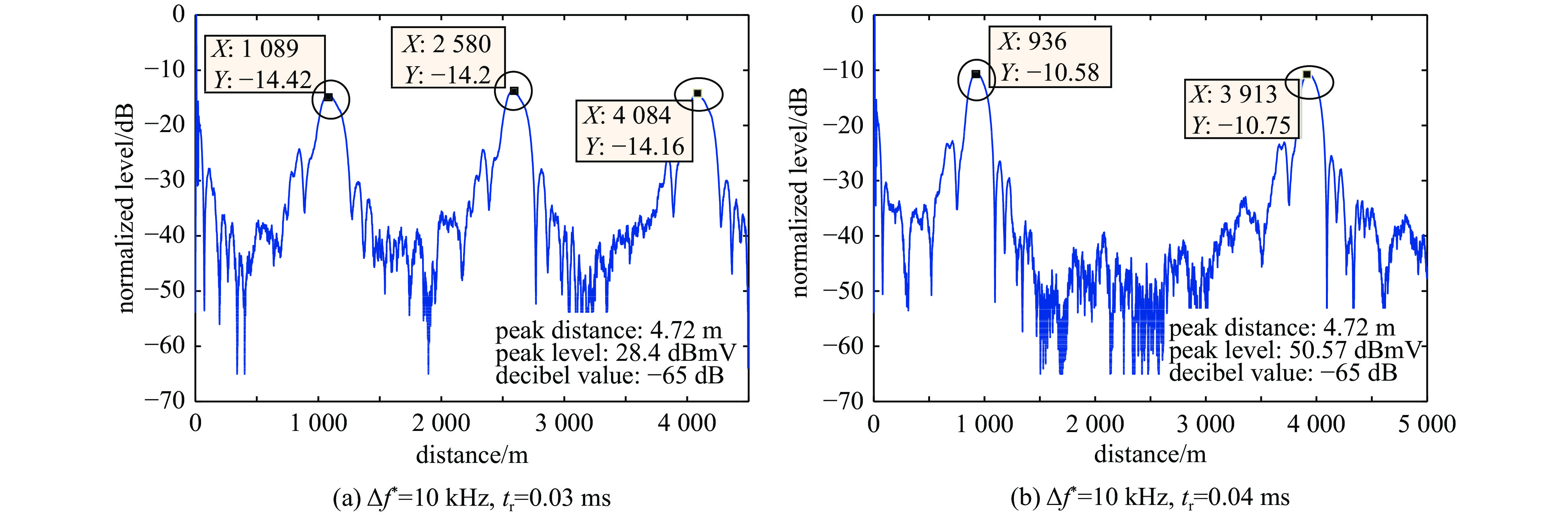 Aiming at the problem of multiple false alarm signals of radar equipment in complex electromagnetic interference, in order to get the influence law of key parameters of radar equipment on false alarm signals, and to reveal the essential causes of false alarm signals, taking a type of stepper frequency ranging radar as the test object, this paper theoretically explains the mechanism of false alarm interference and the imaging characteristics of false alarm targets. Combining theoretical and experimental measurements, single-frequency continuous wave is selected as the source of electromagnetic interference, and the test method of injecting equivalent alternative electromagnetic radiation is adopted to summarize and generalize the influence of the critical radar parameters including frequency hopping interval and stepping frequency on the false alarm signal. The results show that the single-frequency electromagnetic interference of the test radar generates false alarm signal. When the frequency stepping of the tested radar is selected as 10 kHz and the frequency hopping time is 0.05 ms, the variation of false alarm level with interference frequency offset is relatively stable, and the signal amplitude loss is relatively small. The values can be used as the optimal control parameter values, and on this basis, it can provide technical support for subsequent experimental evaluation of radar equipment in multi frequency electromagnetic environments.