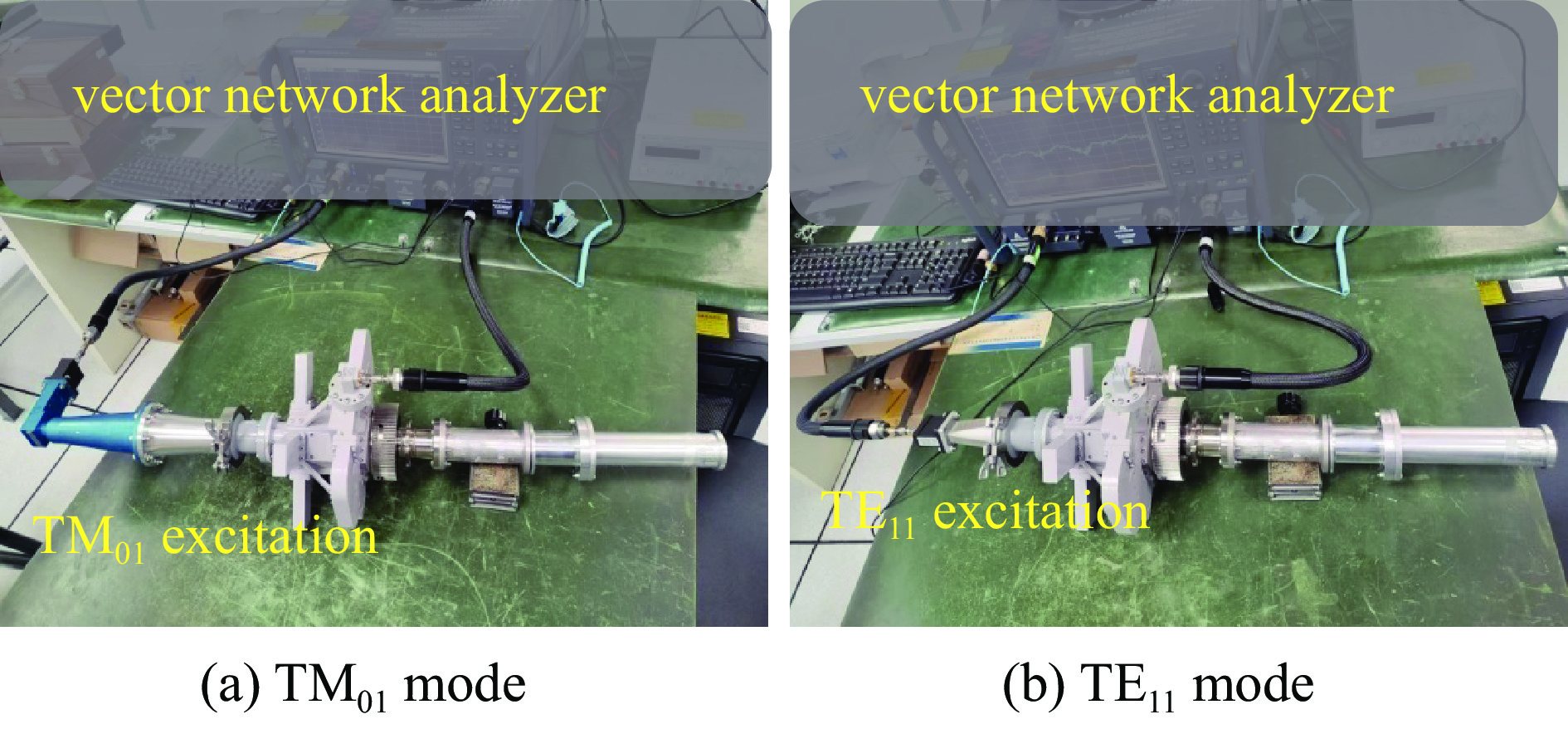 To solve the problems of low inhibition of parasitic mode and measurement accuracy is susceptible to interference of parasitic modes in traditional high power microwave online measurement devices, a high-power TM01 mode coupling device is studied, which is applied to the Ku-band relativistic backward wave oscillator (RBWO) online measurement system. Due to the RBWO emission’s angular inhomogeneity, asymmetric modes is generated, and the traditional single-arm porous circular waveguide coupler cannot solve the competition problem between the TM01 mode and the asymmetric modes, which generally leads to the detection waveform distortion and coupling degree judgment deviation and seriously affects the accuracy of the online evaluation of the output power of TM01 mode of the RBWO. For this reason, combining the four-arm porous coupling structure with the TM01 mode selection network, a novel online mode-selective coupling device is proposed in this paper. Using the field structure difference of different waveguide modes, the proposed device realizes the differential coupling of TM01 mode and other parasitic modes and solves the problem of inaccurate online test power caused by parasitic mode interference. The simulation results show that the coupling degree of the proposed new coupler to TM01 mode is more than 20 dB higher than that of the other modes, and the on-line test waveform and power measured in the high-power experiment are in good agreement with the radiated field test waveform and power, and the coupling stability is significantly improved.