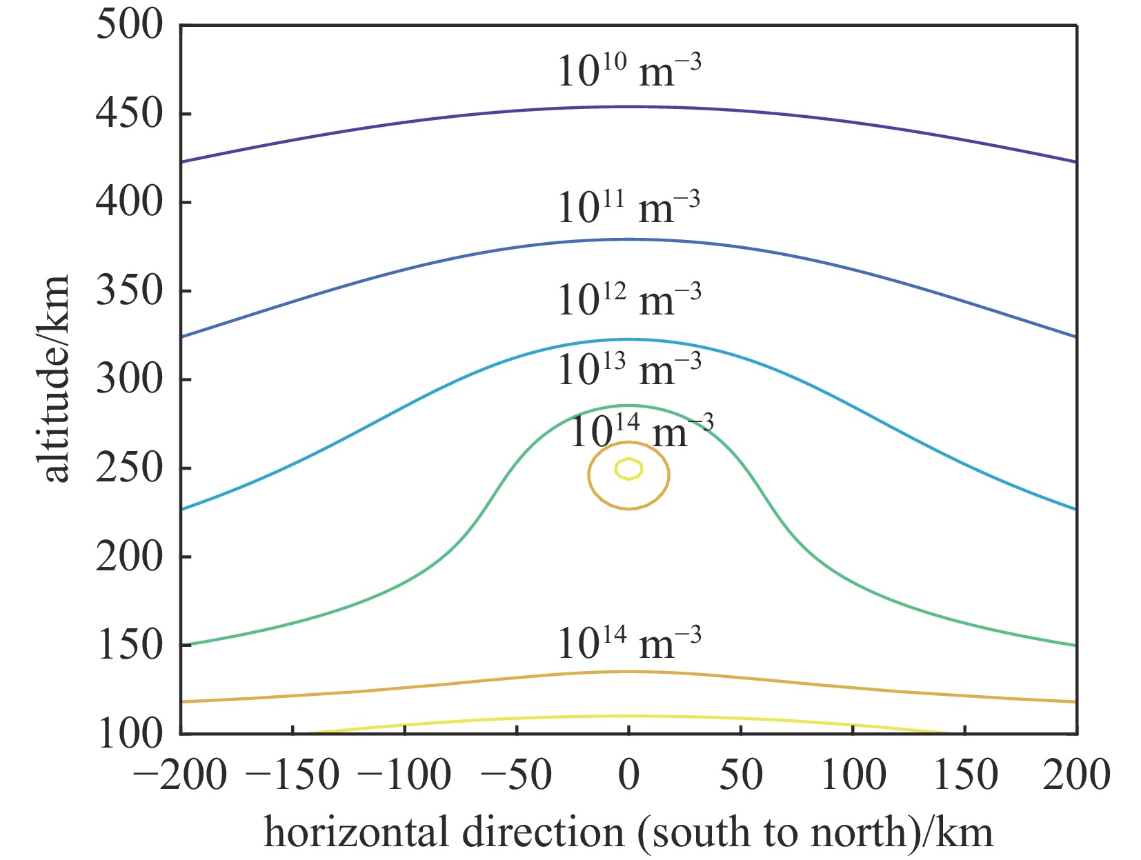 This model was used to analyze the influence laws of explosion altitude, latitude, and yield on the ionization density distribution. The results show that: Due to the influence of high-energy electron transport, the symmetry of the ionization density distribution is lost; The ionization density distribution is significantly enhanced in the direction passing through the explosion center and perpendicular to the magnetic field lines; The higher the explosion altitude, the greater the ionization density at high-altitude positions, while the influence caused by high-energy electron transport becomes smaller in high-altitude regions, and the ionization density at low-altitude positions decreases; The yield has a significant impact on the numerical value of the ionization density, but has a relatively small impact on the relative distribution of the ionization density.