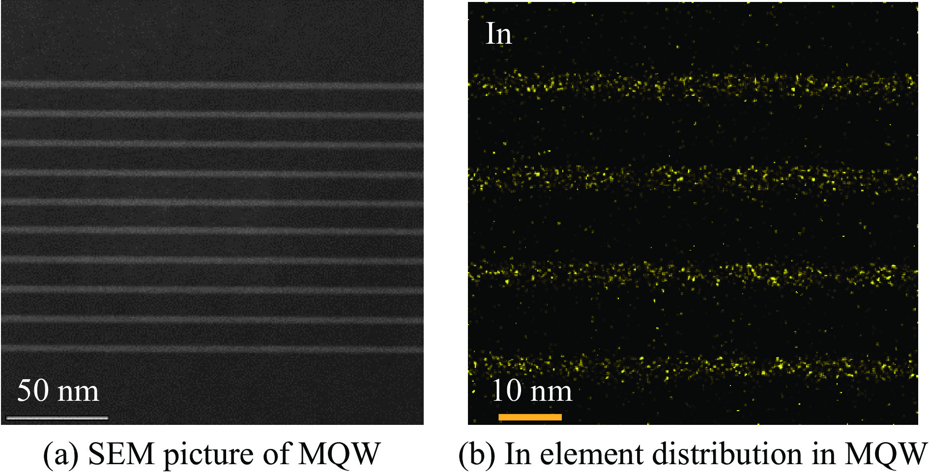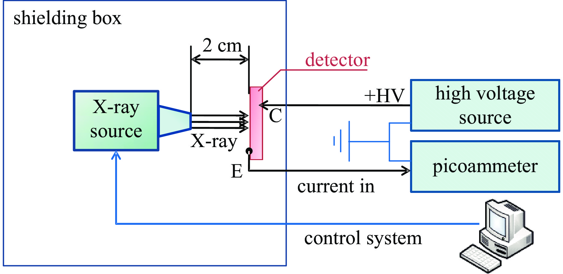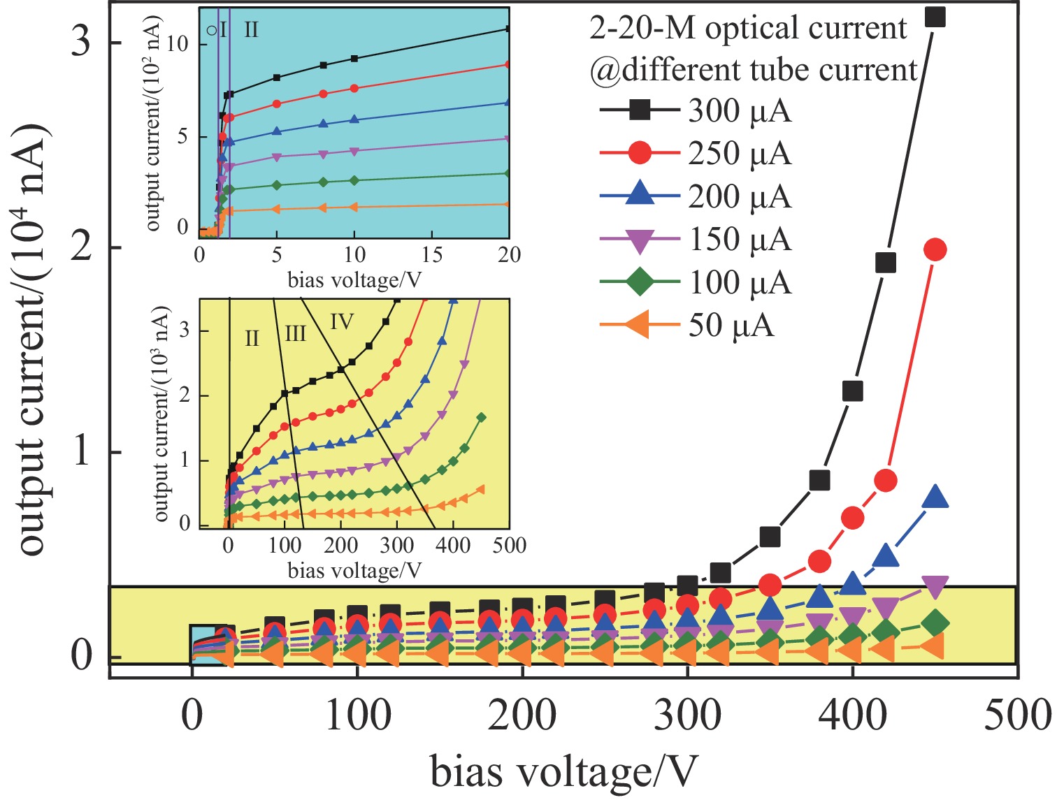 The device exhibited low dark current and sensitive X-ray response characteristics. A multi-quantum well recombination structure with a luminescence peak at 410 nm was incorporated into the device. Luminescence spectrum tests and imaging analyses confirmed the device’s response to varying radiation doses and changes in luminescence efficiency under different applied voltages.