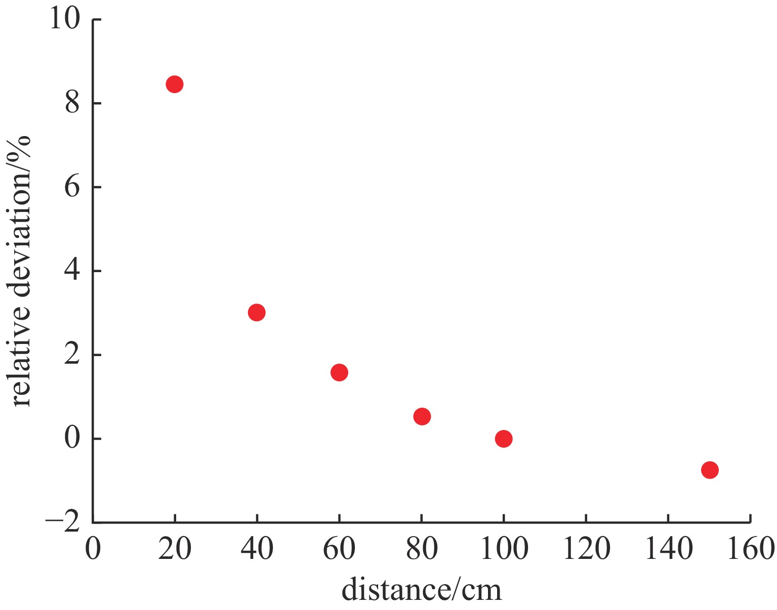In near-field pulsed neutron measurements (at distances of less than 1 m), large-sized plastic scintillators (ϕ100 mm × 100 mm) exhibit neutron sensitivity deviation due to geometric discrepancies between calibration and measurement, and the inverse-square law has limited applicability under close-proximity conditions, hindering accurate metrology.