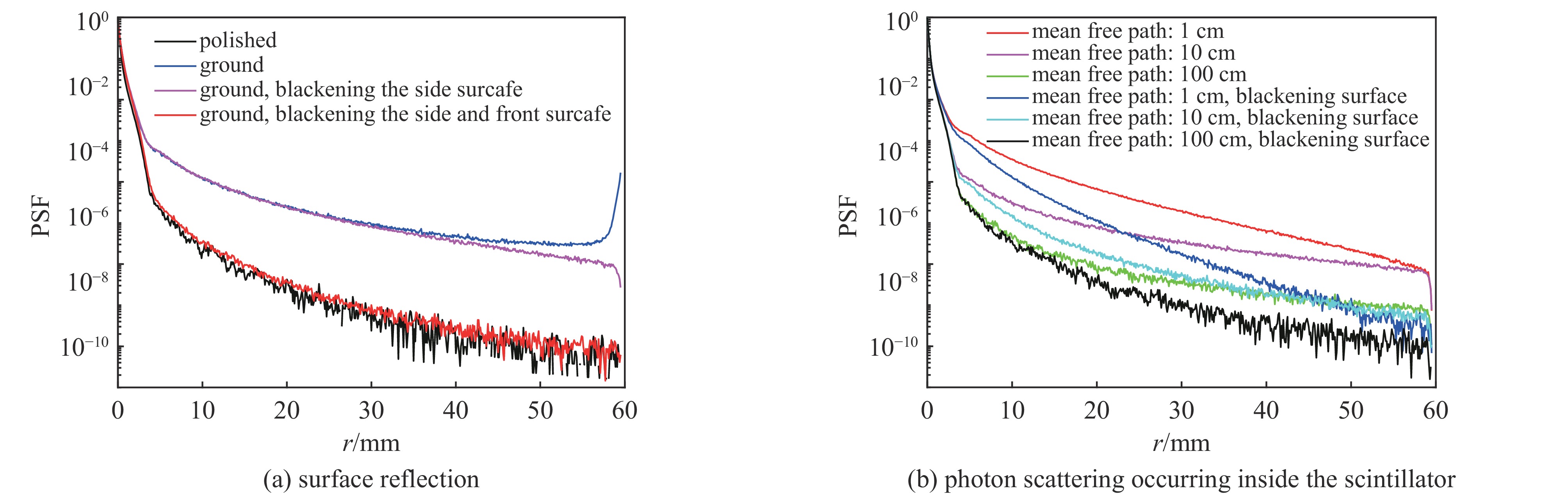 The ring-aperture method provides a reliable experimental approach for measuring low-frequency components of PSF. The research results indicate that optical photon transport is an important factor leading to long-range blur. By surface treatment of scintillators, such as blackening and polishing, long-range blur can be effectively suppressed.
