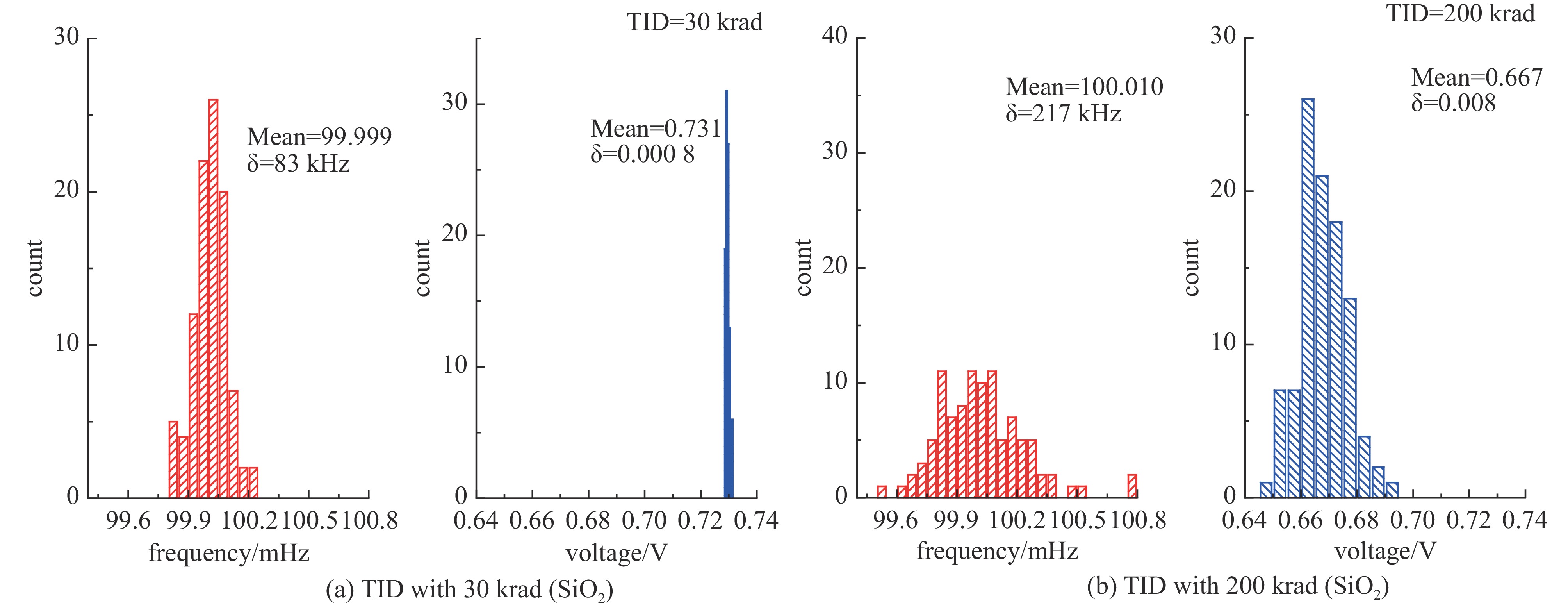 Employing with Monte Carlo sampling method to modify the sensitive parameters of the transistor SPICE model, the TID effect of PLL circuit was studied, where the statistical distributions of output frequency f, phase difference δ, and control voltage Vvco_in under different TID ranging from 0 to 200 krad (SiO2) are given.