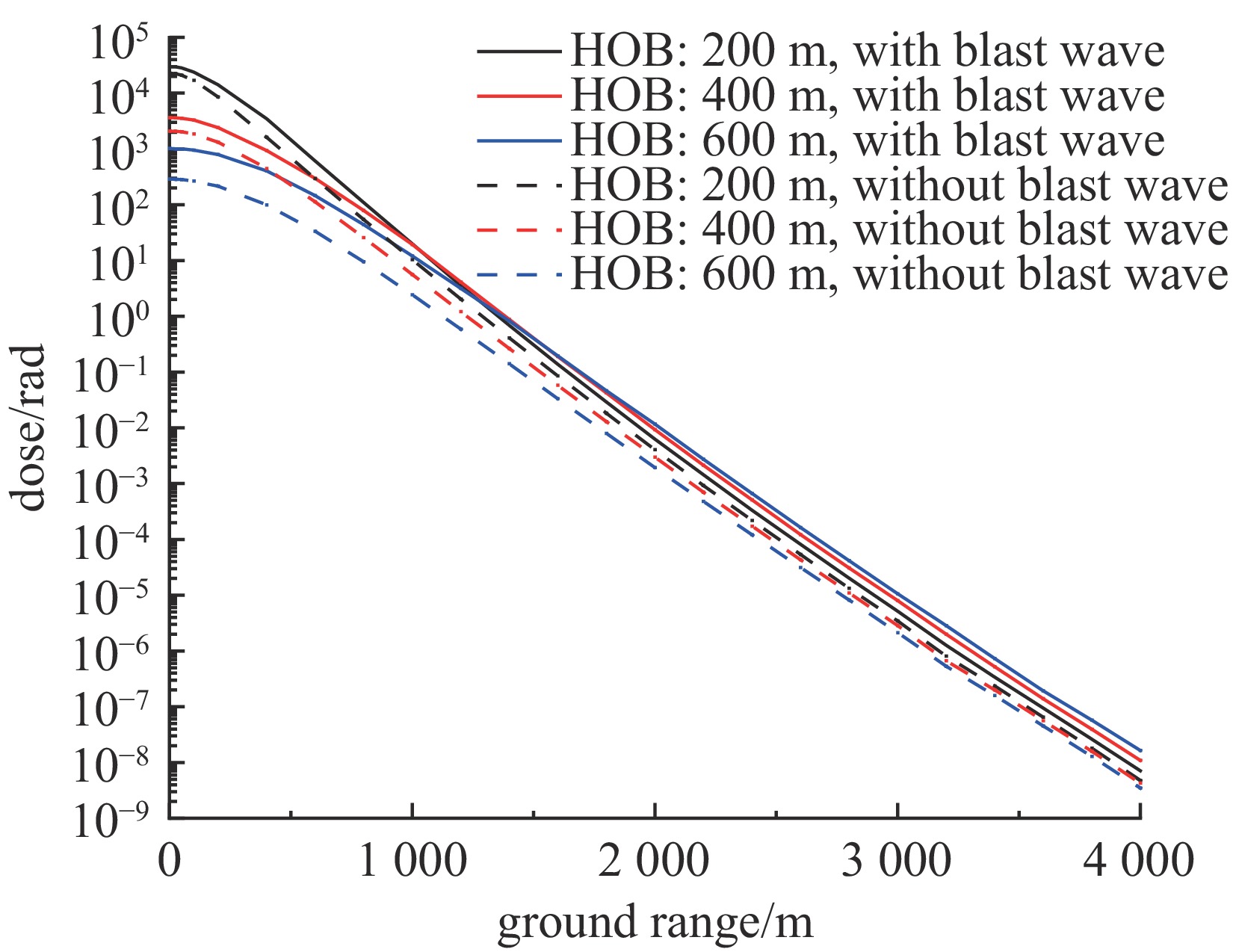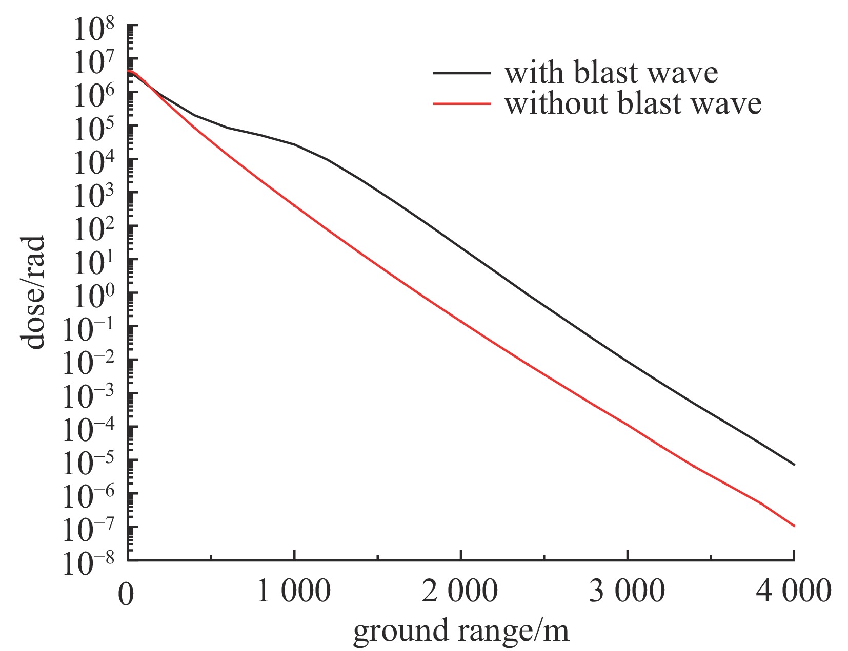 Extreme nuclear events typically generate intense explosions and release radioactive fission products. Fission product γ, emitted during radioactive decay of fission products, can affect radiation dose fields for 10−5 to 15 seconds. During this period, the source intensity, spectrum, and spatial distribution exhibit significant temporal variations. Concurrently, shock-waves induce complex atmospheric density changes, creating hydrodynamic enhancement effects.