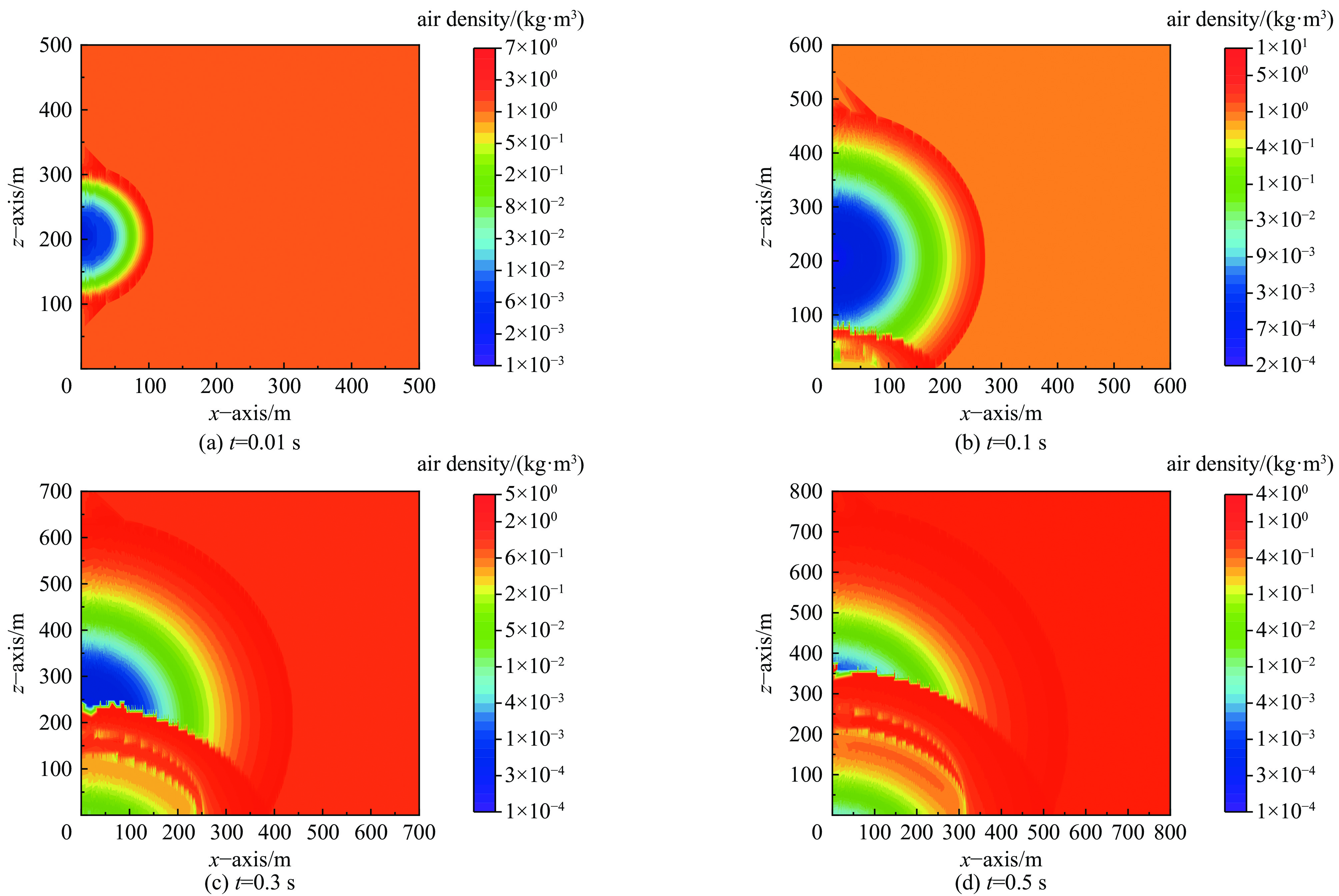 A computational model for atmospheric density distribution was constructed using the LAMBR theory for shock-wave flow-field evolution. Based on radiation transport time-discrete theory, a transient variable-time-step Monte Carlo (MC) method was developed using the PHEN particle transport code.
