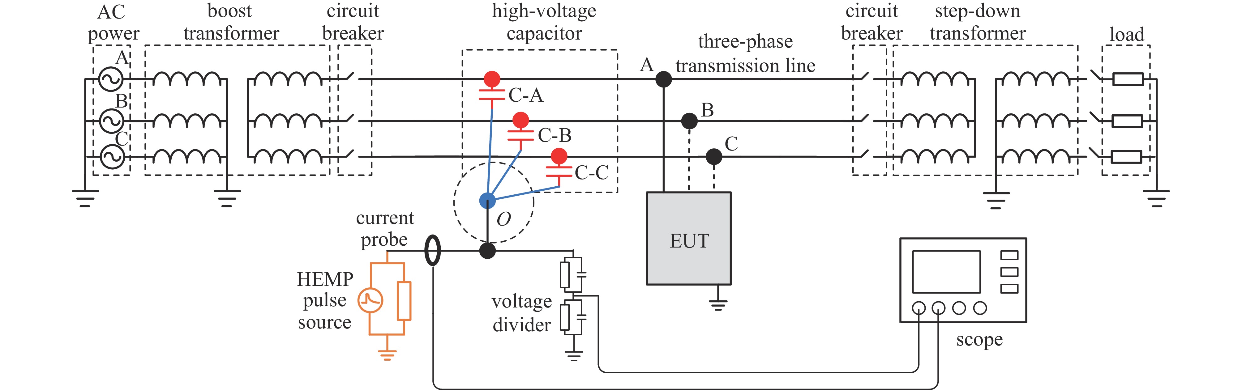 Power equipment ports exhibit significant variations in characteristics, resulting in severe waveform distortion and low coupling efficiency, especially when operating at high voltages. Traditional testing methodologies in powered states present risks of system failures, complicating the evaluation of equipment resilience under such conditions. Notably, there is a lack of established testing methods or platforms for assessing the effects of high-altitude electromagnetic pulse (HEMP) on power equipment, both domestically and internationally.