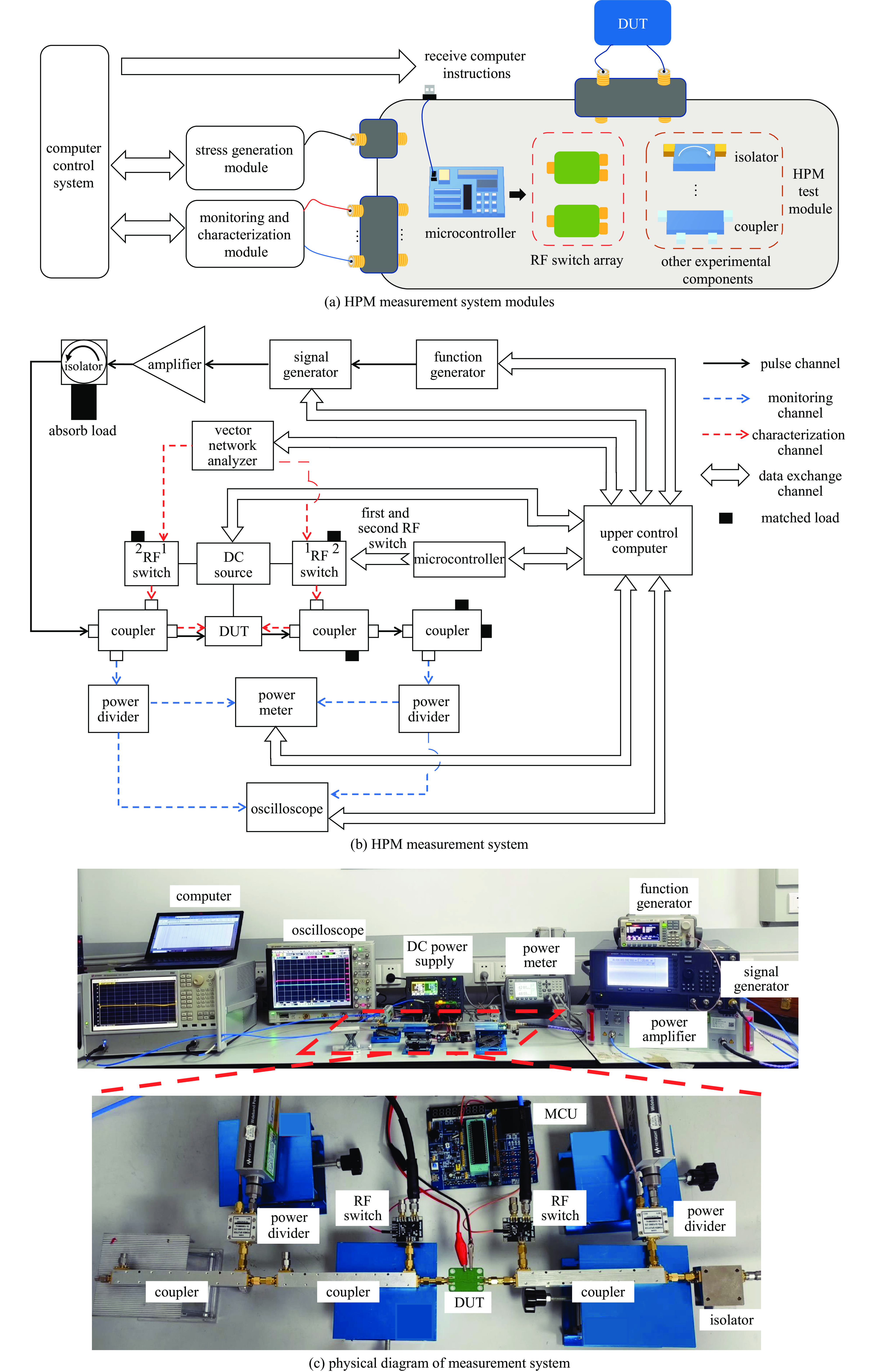 This work developed a high power microwave (HPM) automatic measurement platform grounded in the interaction mechanism between HPM and devices, and designed two testing protocols—single pulse excitation for electrical stress characterization and continuous pulse excitation for thermal failure evaluation.