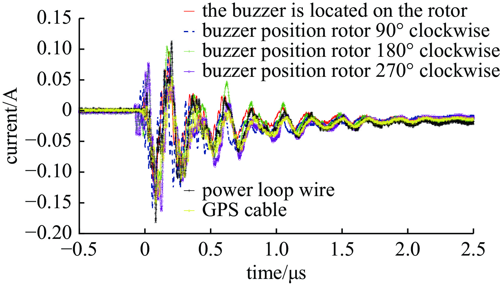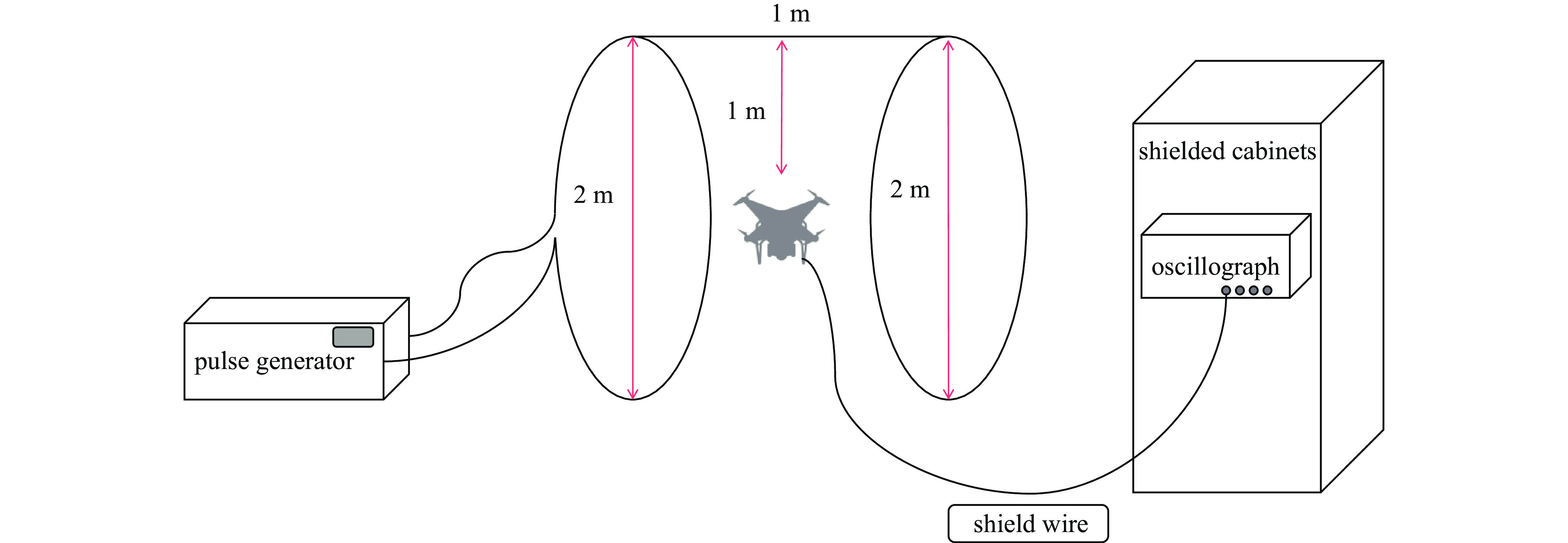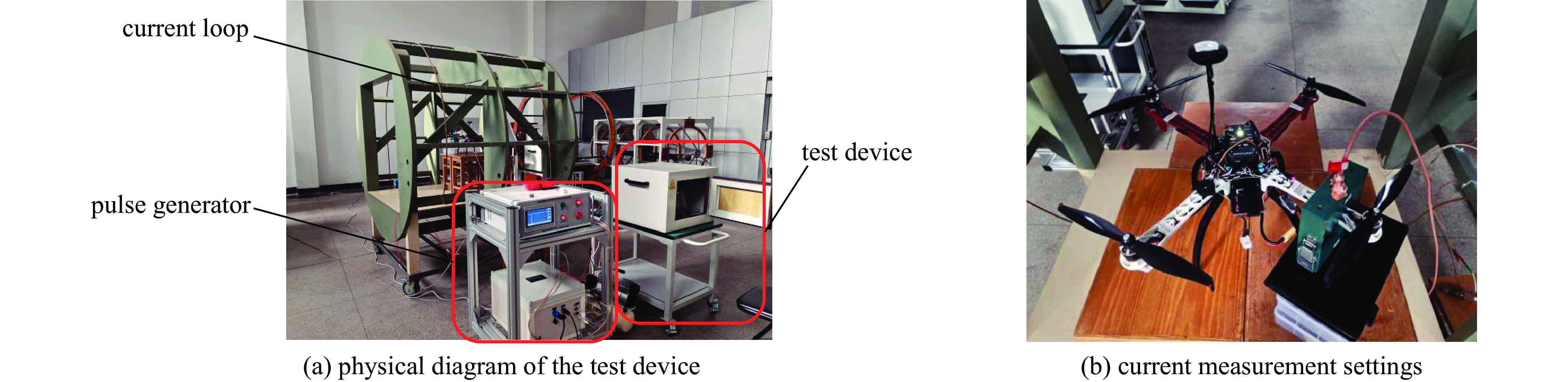 By simulating near-lightning pulse electromagnetic field environments experimentally, under various conditions including electric field strengths of 240 kV, 280 kV, and 320 kV, and magnetic field strengths ranging from 80 to 1600 A/m, induced current measurements were conducted on key internal cables connected to the motor, electronic speed controller (ESC), flight control module, GPS, and receiver.