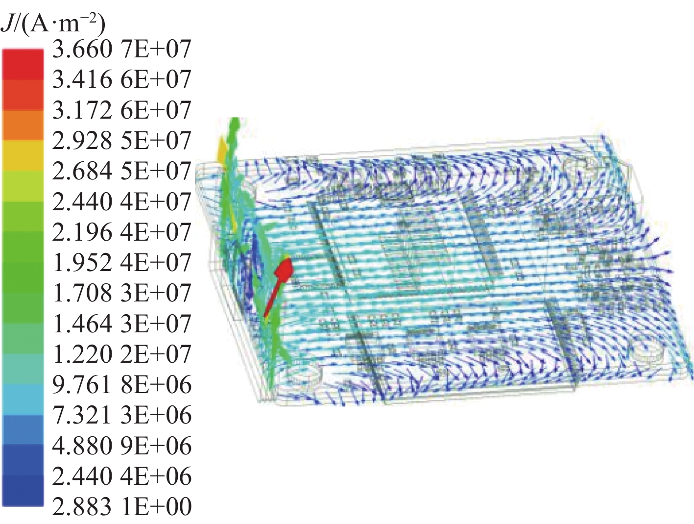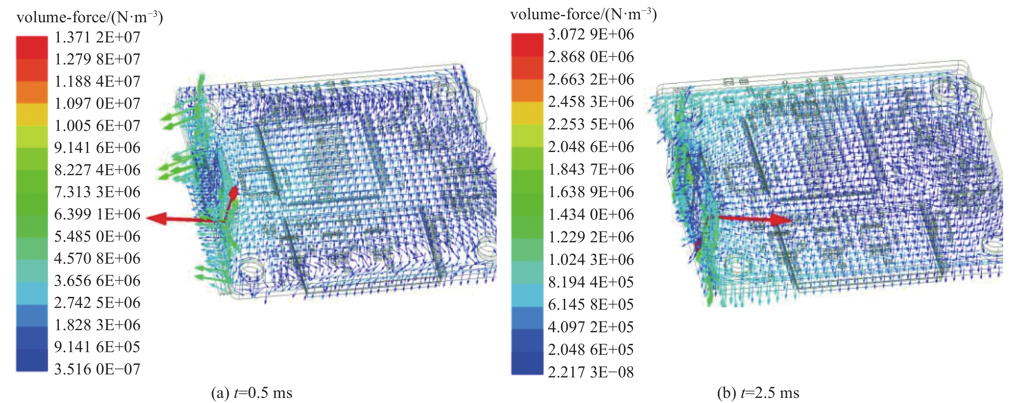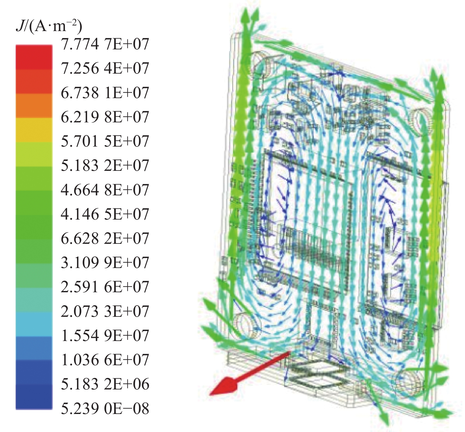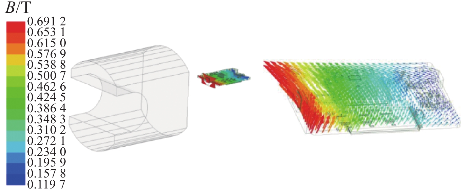 When the fuze circuit module is arranged parallel to the projectile axis, although the overall magnetic field strength is greater than when it is arranged perpendicular to the projectile axis, the peak magnetic field strength in the perpendicular arrangement covers an entire surface of the circuit board, whereas in the parallel arrangement, the peak magnetic field strength is only at the edge of the circuit module’s end. When the fuze circuit module is arranged parallel to the projectile axis, the induced eddy current, electromagnetic volume force density, and induced electromotive force are all significantly smaller than those in the perpendicular arrangement.