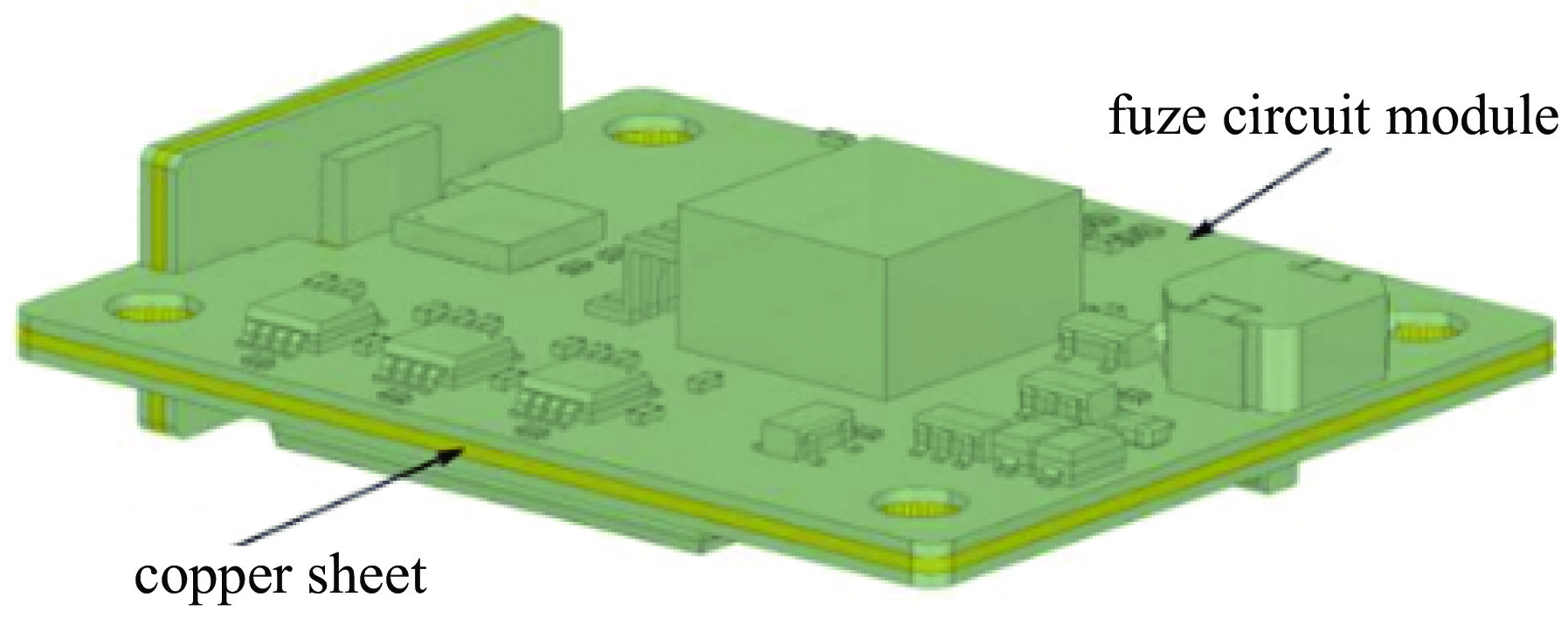 A reasonable arrangement of the fuze circuit module can reduce the structural thickness and weight of the electromagnetic shielding shell for the fuze circuit, while effectively ensuring the performance of the fuze circuit.