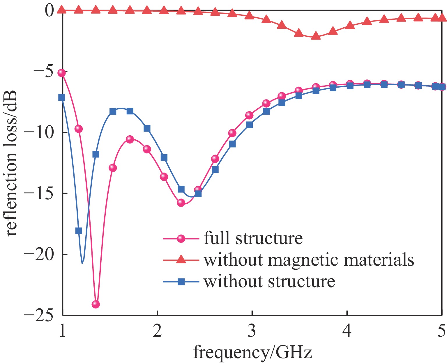Simulation results show that within the working frequency band, there are two absorption peaks at 1.36 GHz and 2.29 GHz, and the absorption rate exceeds 90% in the frequency range of 1.16-2.82 GHz, effectively covering the L band and extending to part of the S band. Under thin-layer conditions, it achieves a wideband absorption of 1.66 GHz, resolving the inherent contradiction between thickness and bandwidth of low-frequency absorbing materials.