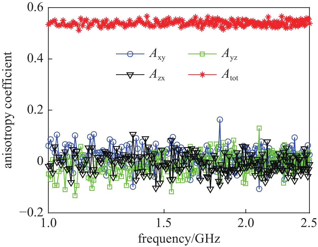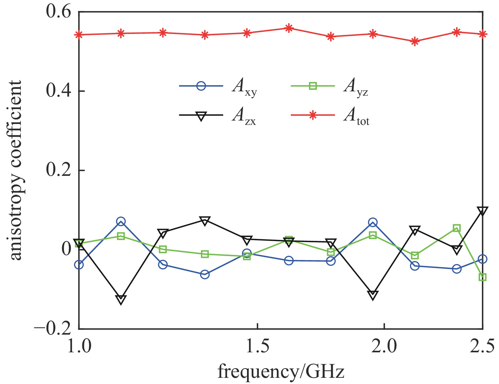 First, the theoretical distribution of the field anisotropy coefficient was reviewed, indicating ideal values of 0 for 2D and 0.5547 for 3D. Measurements were then carried out using a three-axis electric field probe following standard procedures. To streamline the process, an optimized method based on scattering parameters was introduced, significantly reducing the number of required measurements.