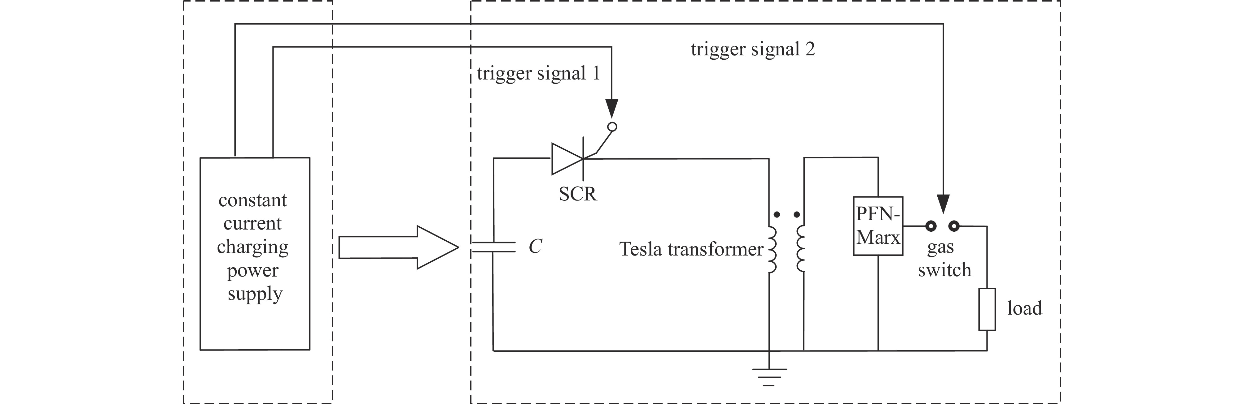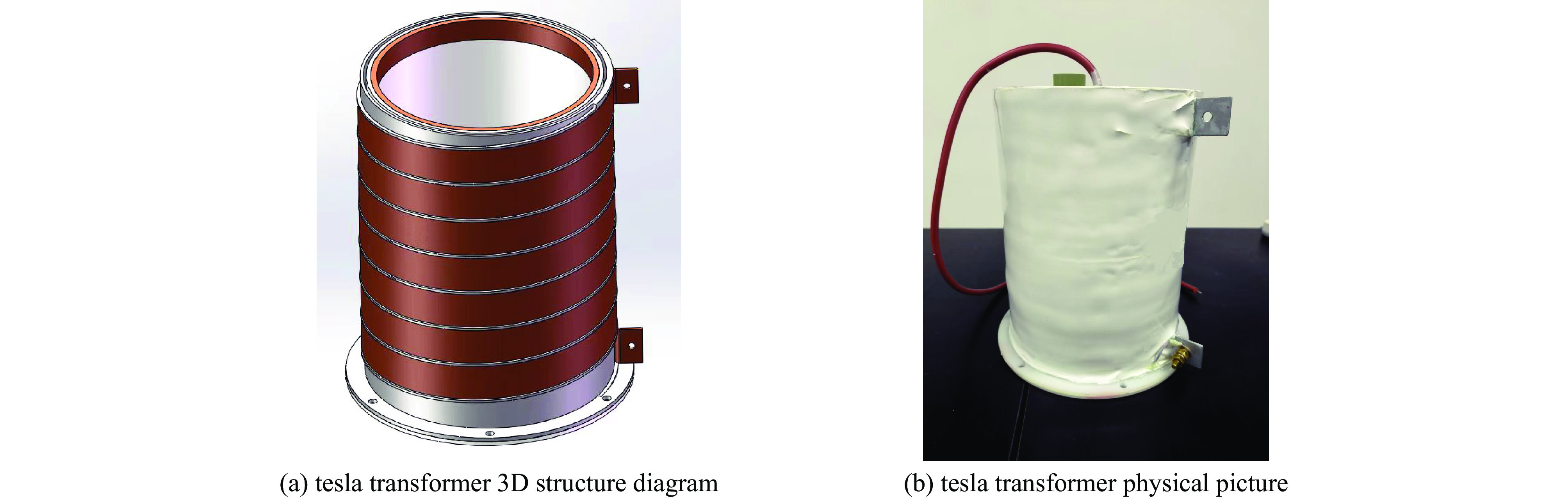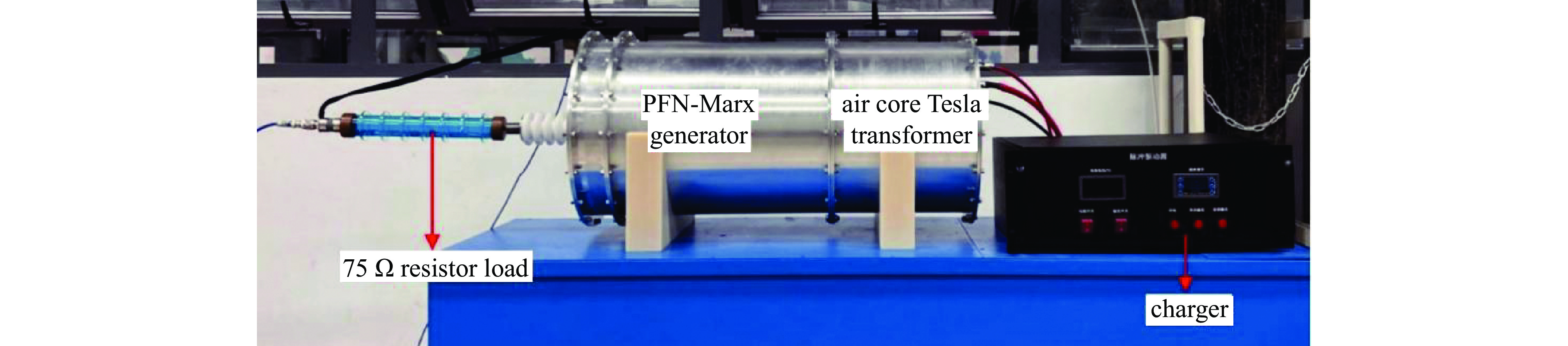 To achieve this goal, a 7-stage unipolar pulse charging PFN-Marx generator is employed, with a high-power constant-current charging power supply powered by lithium batteries used to charge the primary capacitor of the Tesla transformer. The PFN modules are designed with identical charging loop inductors to ensure synchronized pulse charging waveforms, and their modular structure allows for flexible scalability. Additionally, the air-core Tesla transformer (with a coupling coefficient greater than 0.8) is integrated with the PFN-Marx within a high-voltage chamber filled with SF6 gas to ensure insulation.