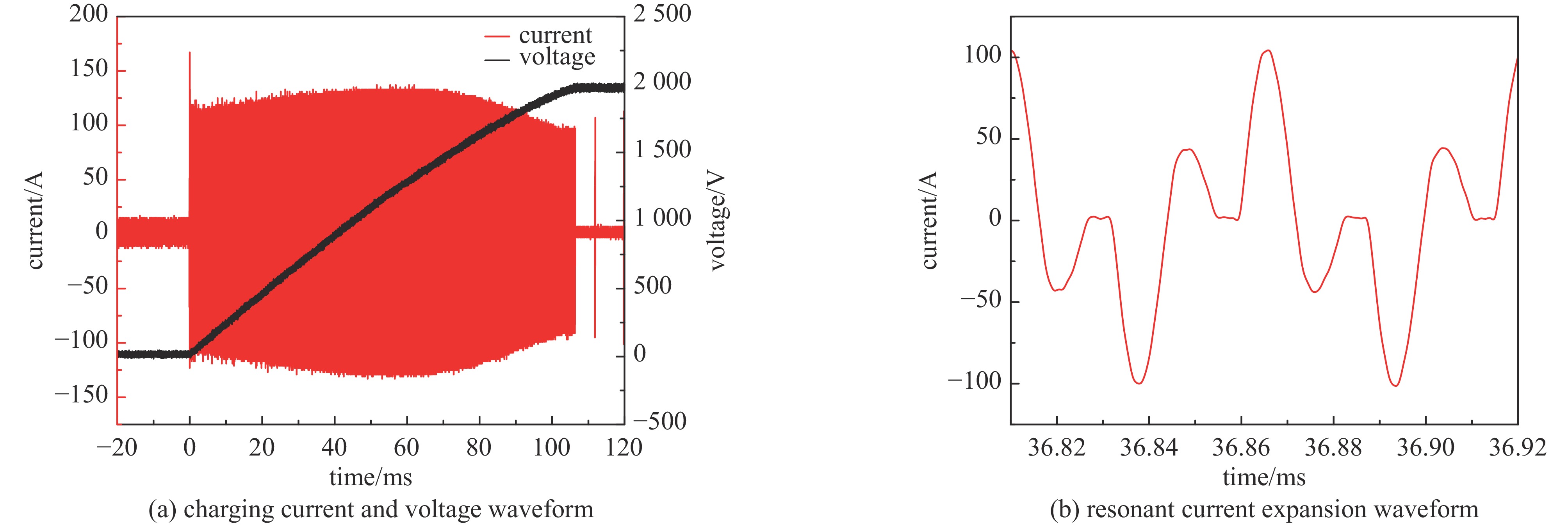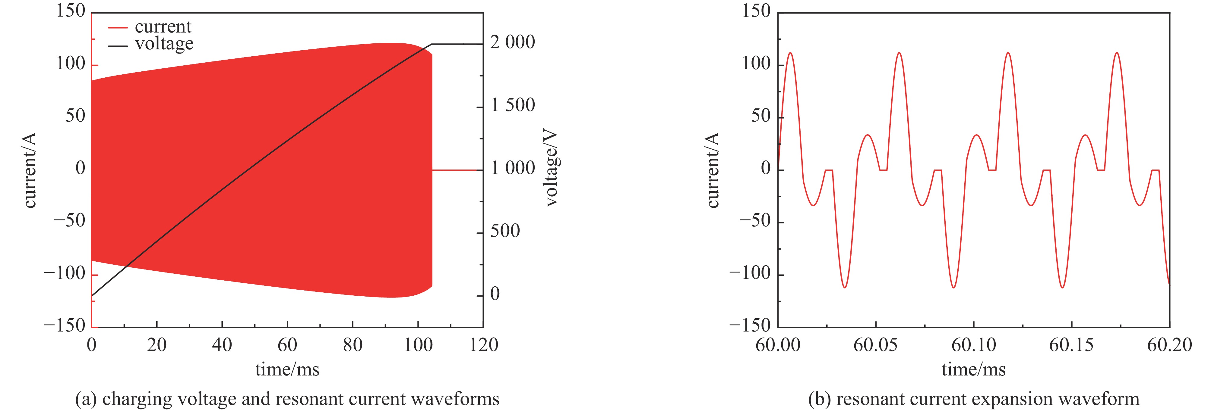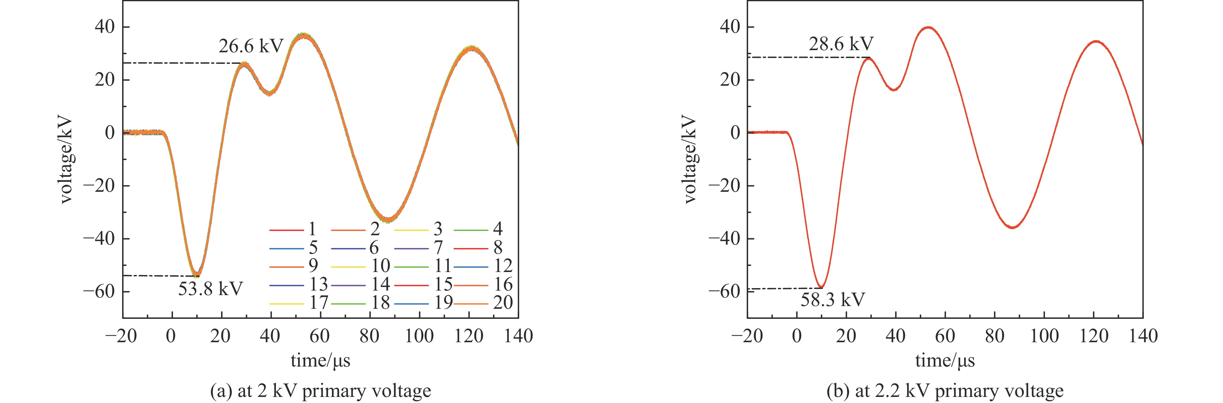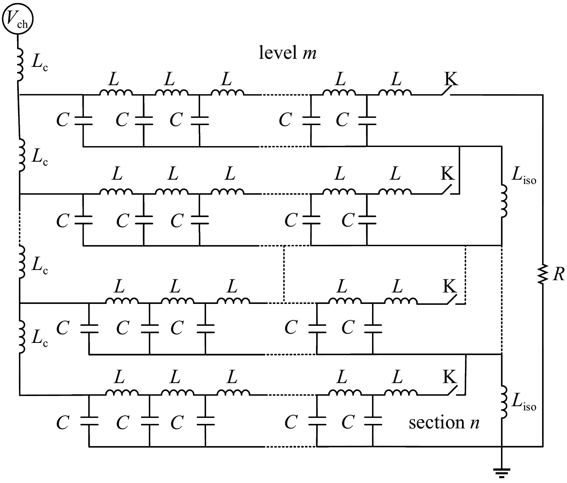 To achieve this goal, a 7-stage unipolar pulse charging PFN-Marx generator is employed, with a high-power constant-current charging power supply powered by lithium batteries used to charge the primary capacitor of the Tesla transformer. The PFN modules are designed with identical charging loop inductors to ensure synchronized pulse charging waveforms, and their modular structure allows for flexible scalability. Additionally, the air-core Tesla transformer (with a coupling coefficient greater than 0.8) is integrated with the PFN-Marx within a high-voltage chamber filled with SF6 gas to ensure insulation.