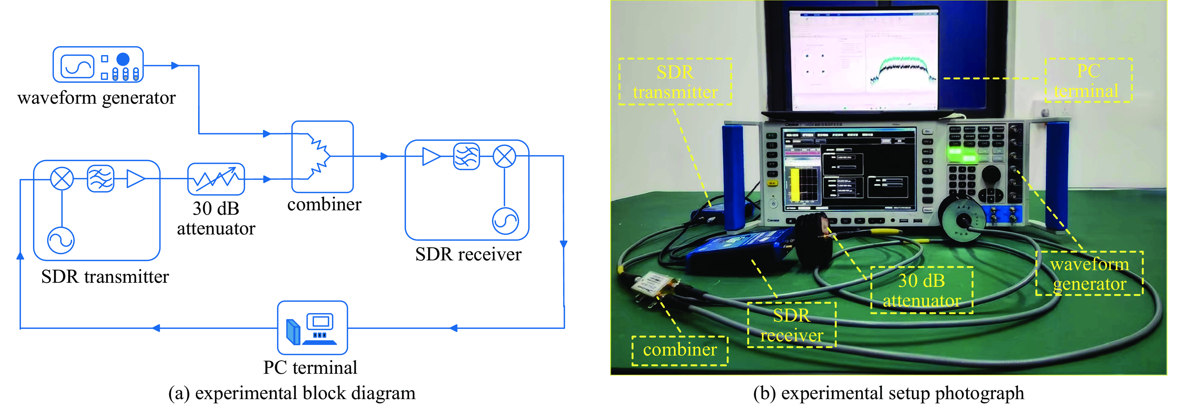 A closed-loop injection platform based on software-defined radio (SDR) was developed to inject synthesized LFM waveforms into a QPSK receiver. Error vector magnitude (EVM) serves as the performance metric, while pulse width, pulse period, and chirp bandwidth are varied systematically under fixed duty-cycle constraints.