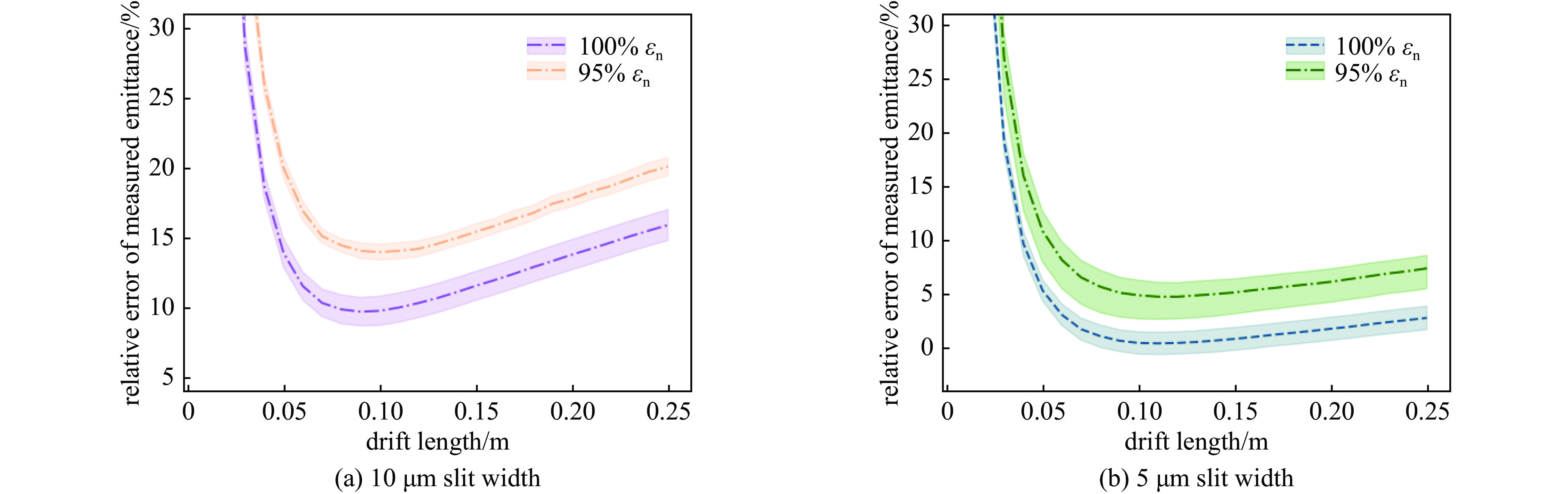 The evaluations indicate that the measurement error of 95% emittance is less than 5%, achieved by employing a slit width of 5 μm, a slit thickness of 1 mm, and a beamlet-drift length of 0.11 m under dynamic conditions.