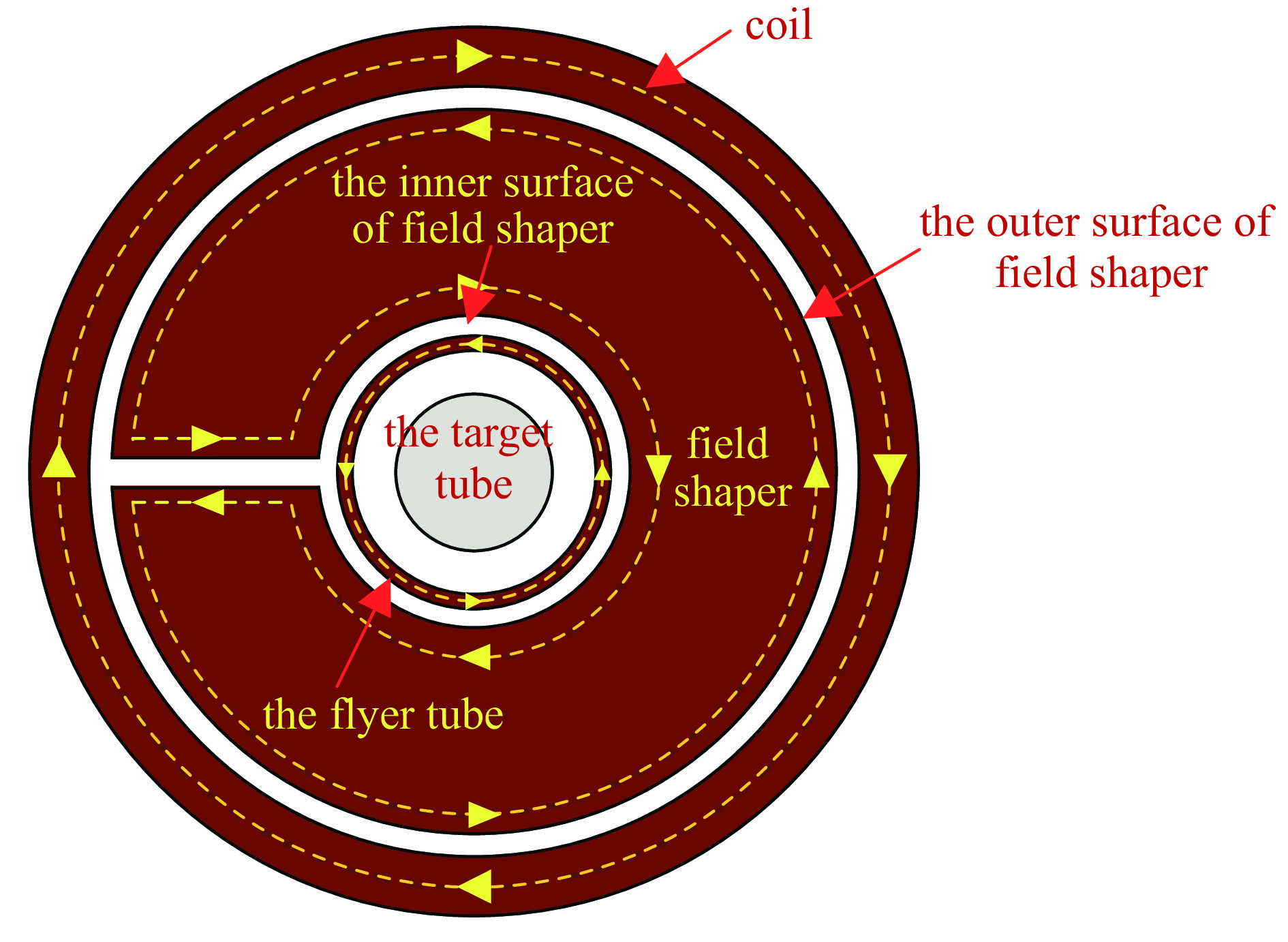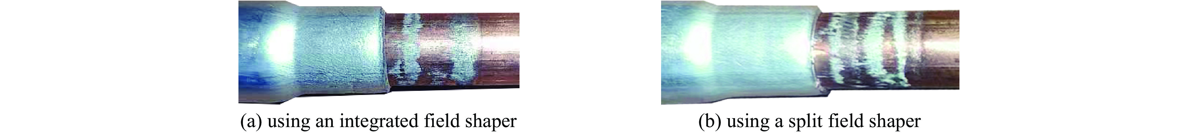 Theoretical analysis of both the split and traditional field shaper provides the basis for the split field shaper structure design. Finite element simulation models reveal the influence patterns of the field shaper structure on the electromagnetic and motion parameters of the joint deformation zone. Mechanical property tests validated the split field shaper’s enhancement of joint bonding performance. Experimental results demonstrate that, compared to the integrated field shaper, joints prepared using the segmented field shaper exhibit a 22.73% increase in tensile performance and a 2.68 mm extension in the total weld length.