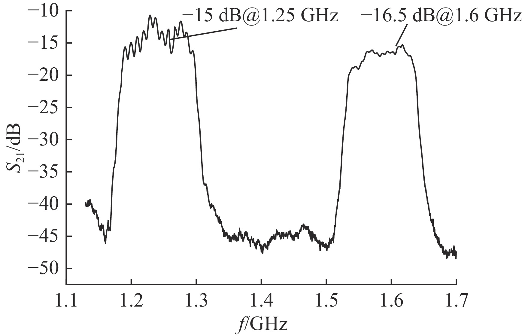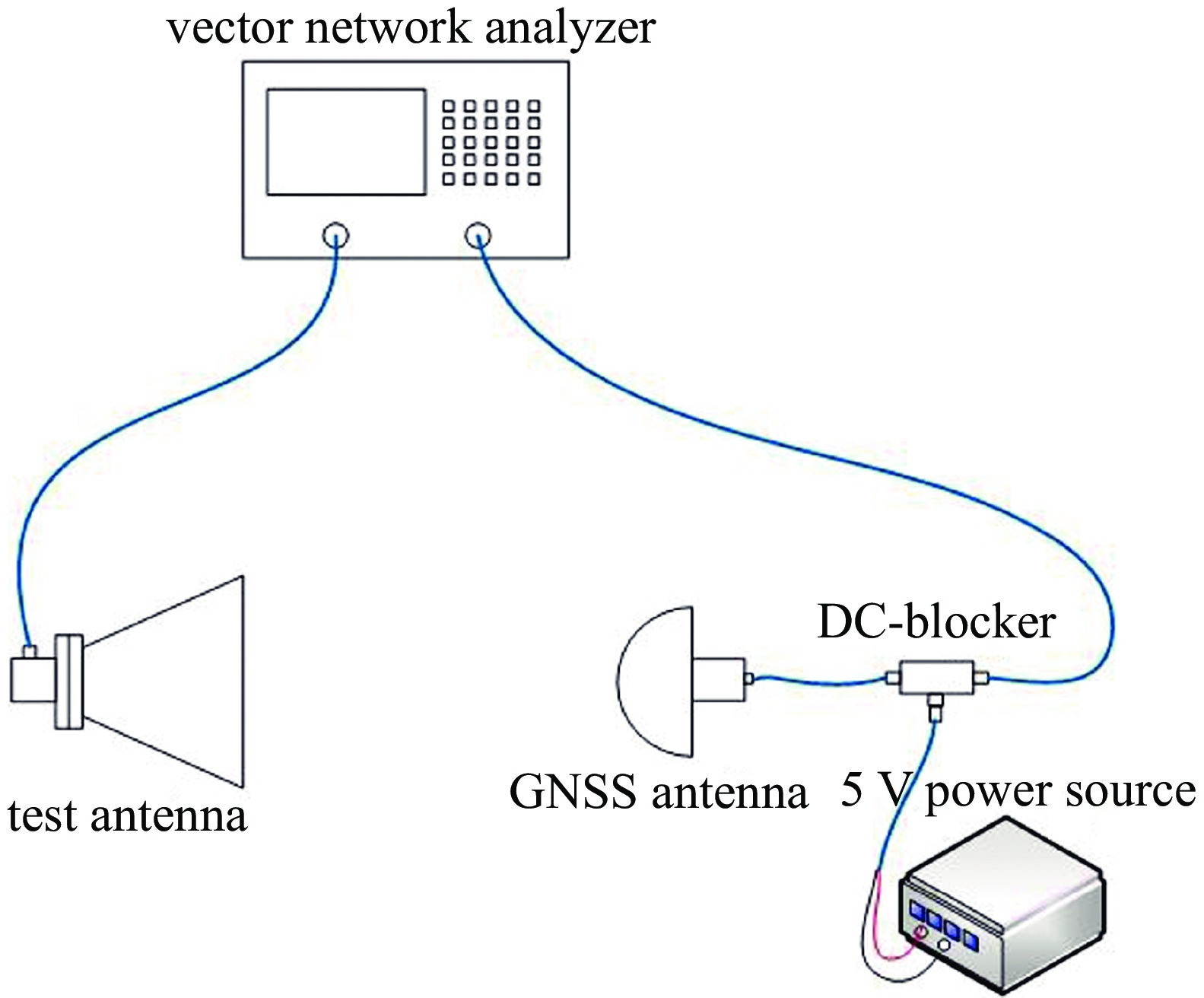 The RF front-end structure of the antenna was analyzed, revealing a design with two separate RF channels (around 1.25 GHz and 1.6 GHz), each with a dedicated first-stage low-noise amplifier (LNA), followed by shared second and third-stage LNAs. The performance of these components was characterized employing a customized “hot measurement” setup, which used a vector network analyzer incorporating a test antenna and a DC blocker.