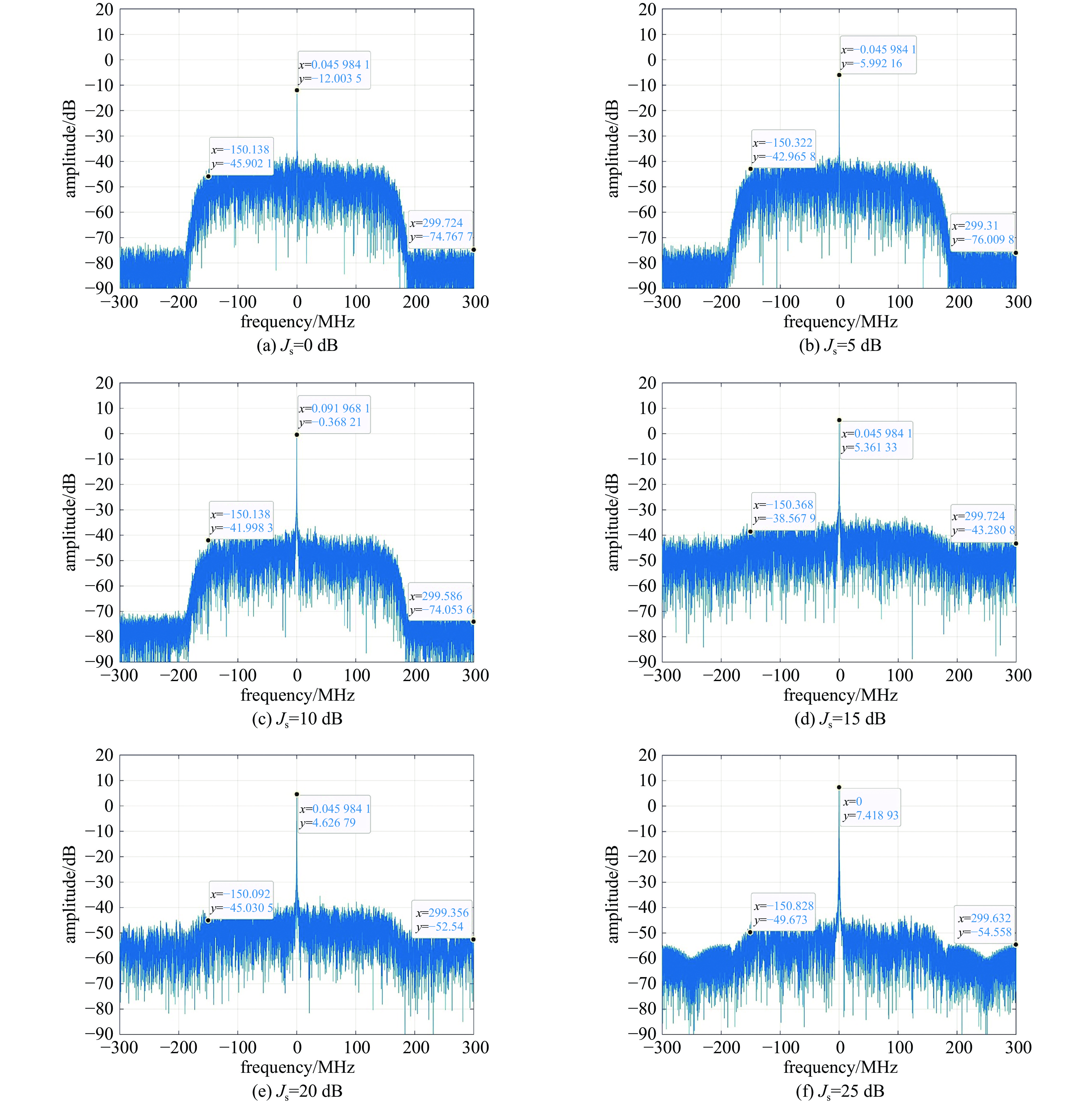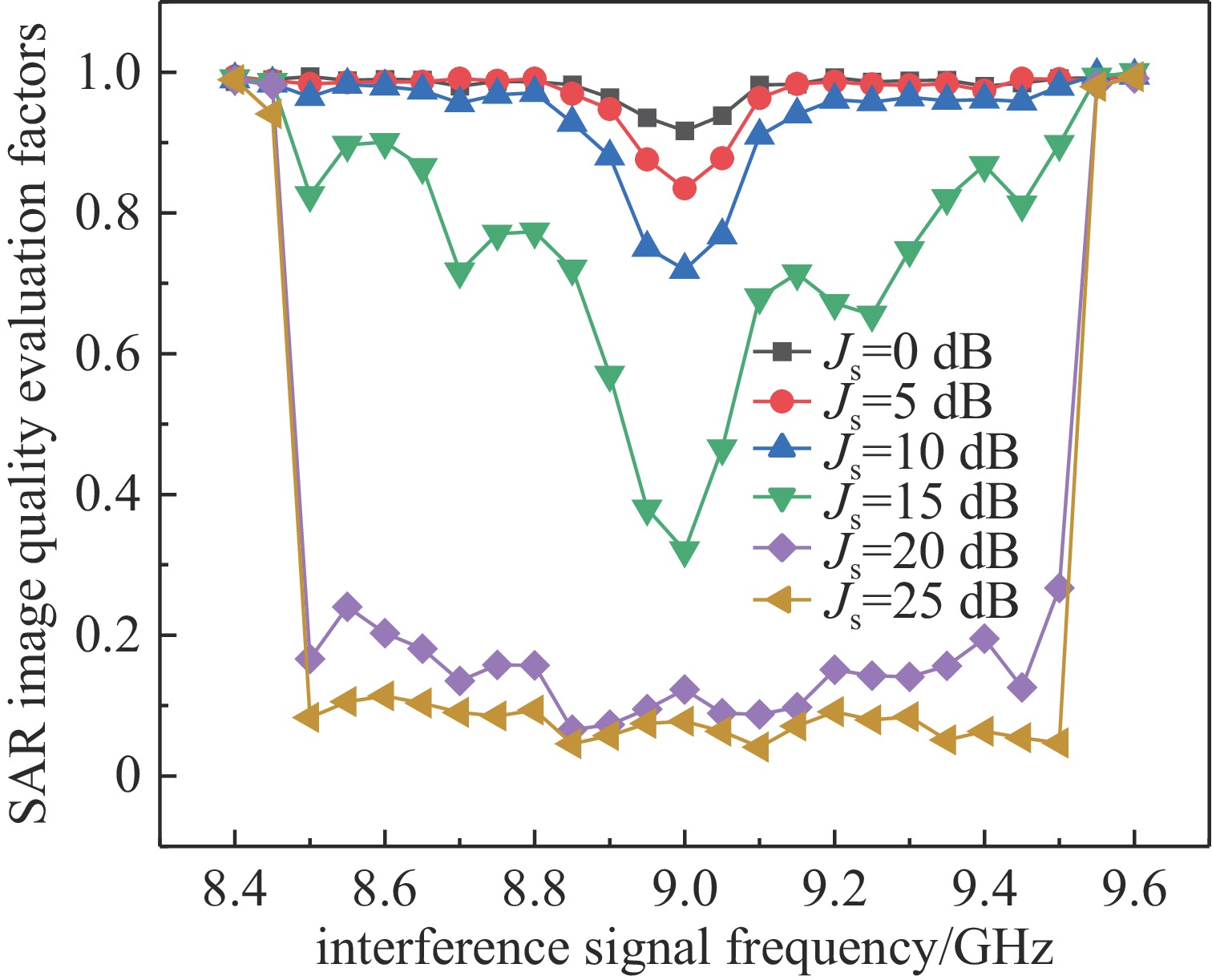 Significant interference effects were observed when the interfering frequency fell within the receiver's hardware passband (8.5−9.5 GHz) and the jammer-to-signal ratio (JSR) reached 15 dB. While the RF front-end exhibited no significant nonlinearity, the interference induced a nonlinear response specifically within the internal Metal-Oxide-Semiconductor Field-Effect Transistor (MOSFET) of the ADC sampling chip. This nonlinearity generated additional DC components and harmonics, identified as the fundamental physical cause of characteristic interference stripes and overall SAR image quality degradation.