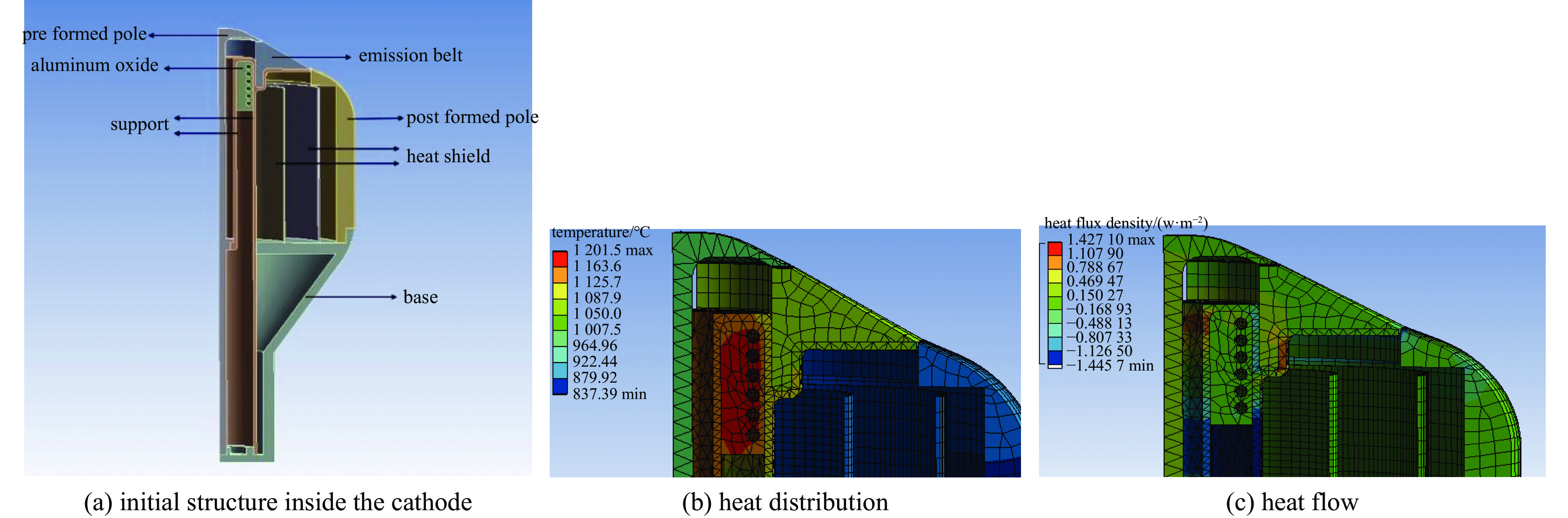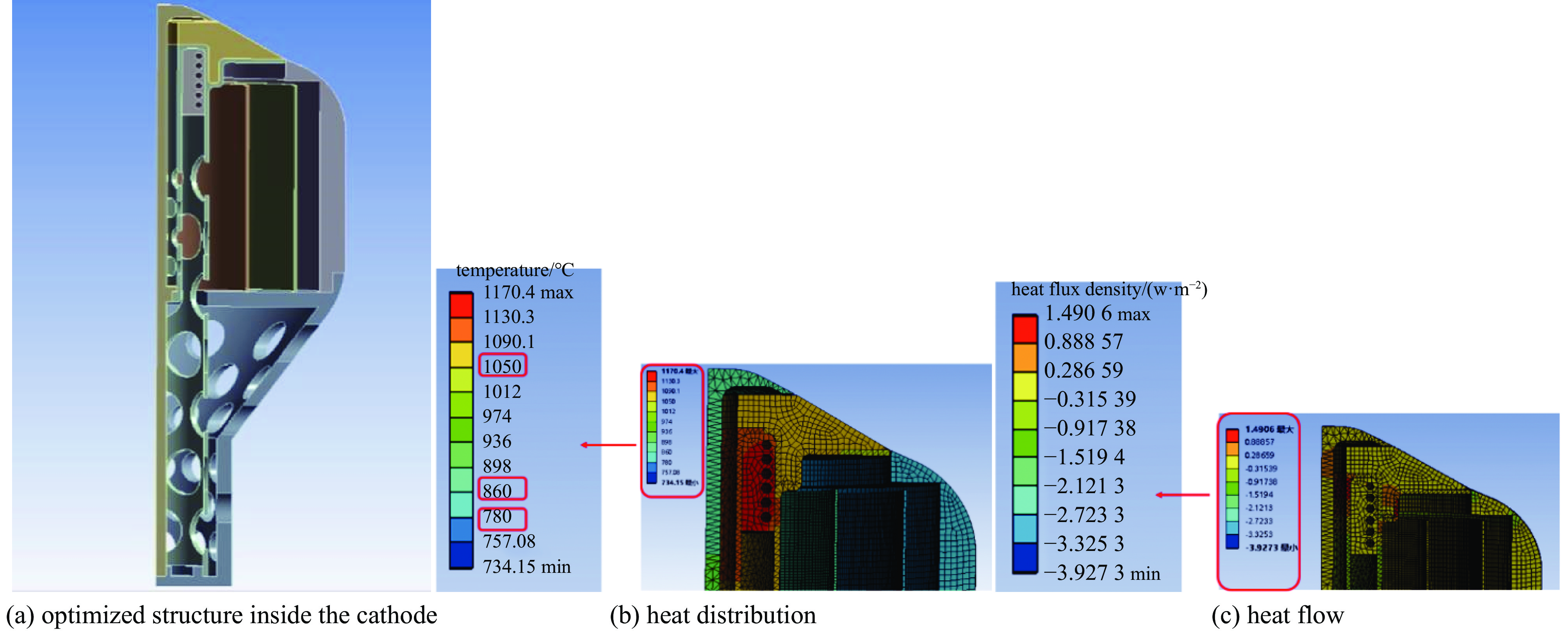 The results of PIC simulation show that under the working conditions of 115 kV and 43 A, the designed electron gun has a transverse to longitudinal velocity ratio of 1.05, a velocity spread of 1.63%, and a guiding center radius of 3.41 mm. The thermal analysis results indicate that the MIG can heat the cathode to 1050 ℃ at a power of 76 W.