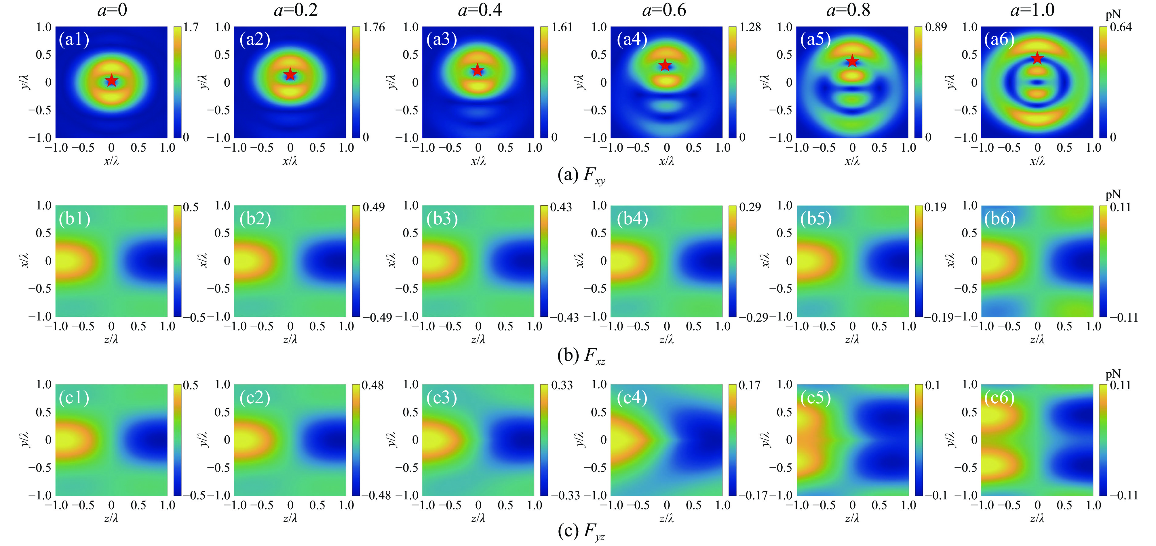 We developed a vector diffraction model to characterize the focal field of FVBs, revealing it as a coherent superposition of integer-order modes with a highly asymmetric weight distribution. Additionally, an optical force model was established to analyze the trapping behavior of spherical nanoparticles. Theoretical calculations and Langevin dynamics simulations were employed to evaluate the three-dimensional trapping stability and multi-degree-of-freedom manipulation capability.