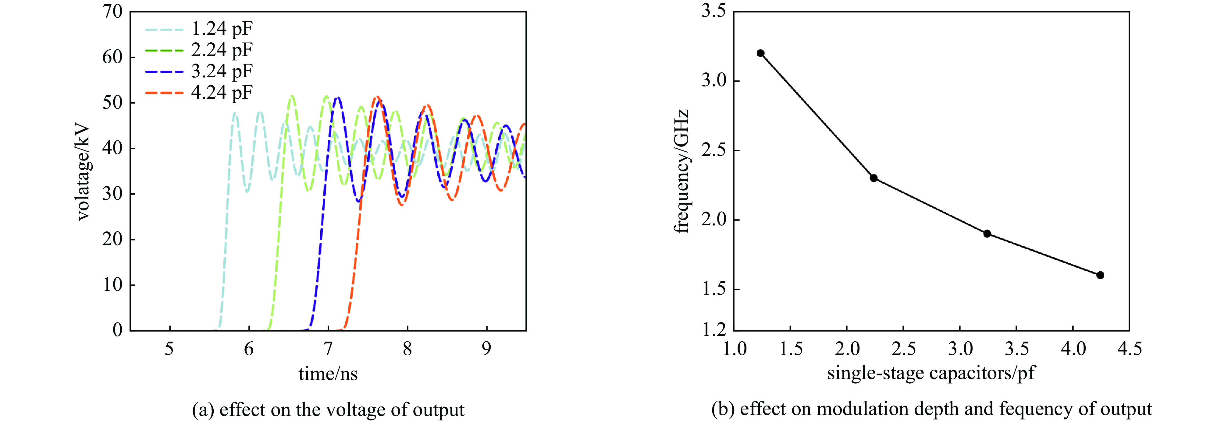 The results show that the saturation current and initial inductance of the nonlinear inductor have a decisive effect on the nonlinear characteristics of the circuit: when these two parameters are small, the leading edge of the output pulse is not fully steepened and is accompanied by oscillating waveforms; increasing them improves the steepening degree of the pulse leading edge, indicating a positive correlation between these two parameters and circuit nonlinearity. Additionally, enhanced nonlinearity of the equivalent circuit leads to a decrease in output frequency; saturation current, saturation inductance, initial inductance, and capacitance per stage all show a negative correlation with the output microwave frequency.