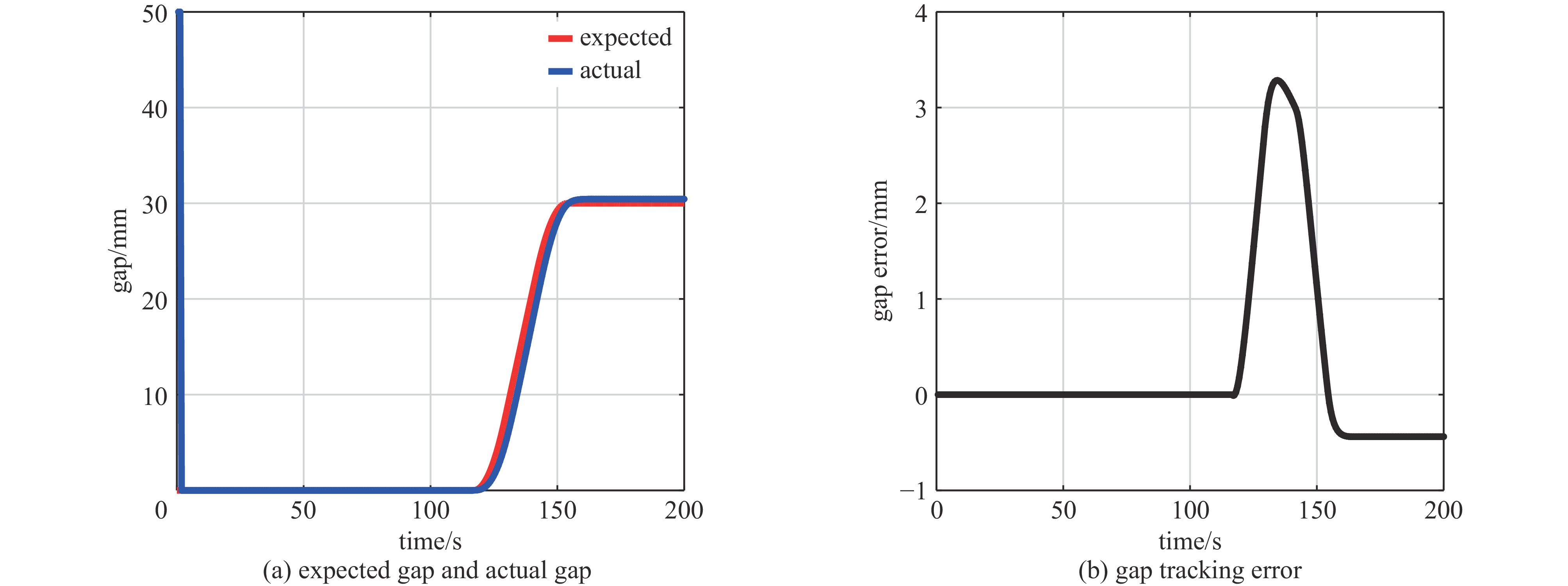 Simulation results of the whole regulation process show that when the switch gap is moved from 0 mm to the desired 30 mm, the process tracking error of the switch gap is less than 3.5 mm, and the final error is less than 0.5 mm.