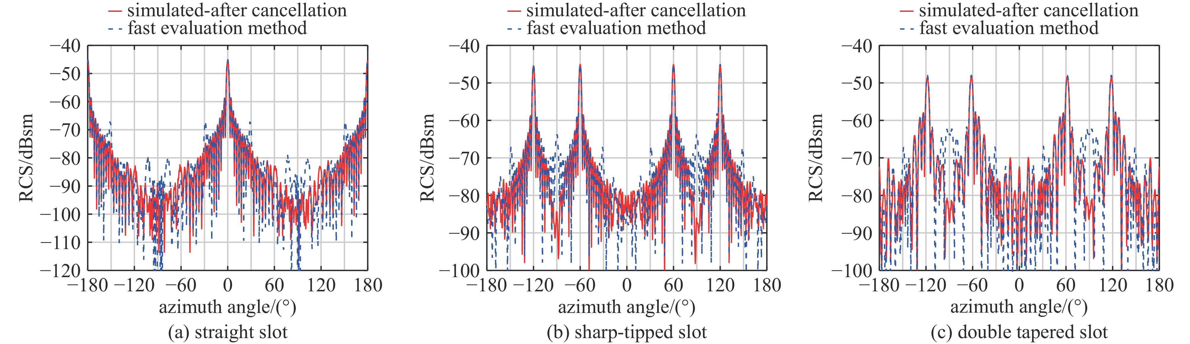 The cancellation technique effectively isolated slot scattering, revealing clear RCS—dimension correlations. The fast estimation method agreed well with detailed simulations and experimental measurements across different slot types.