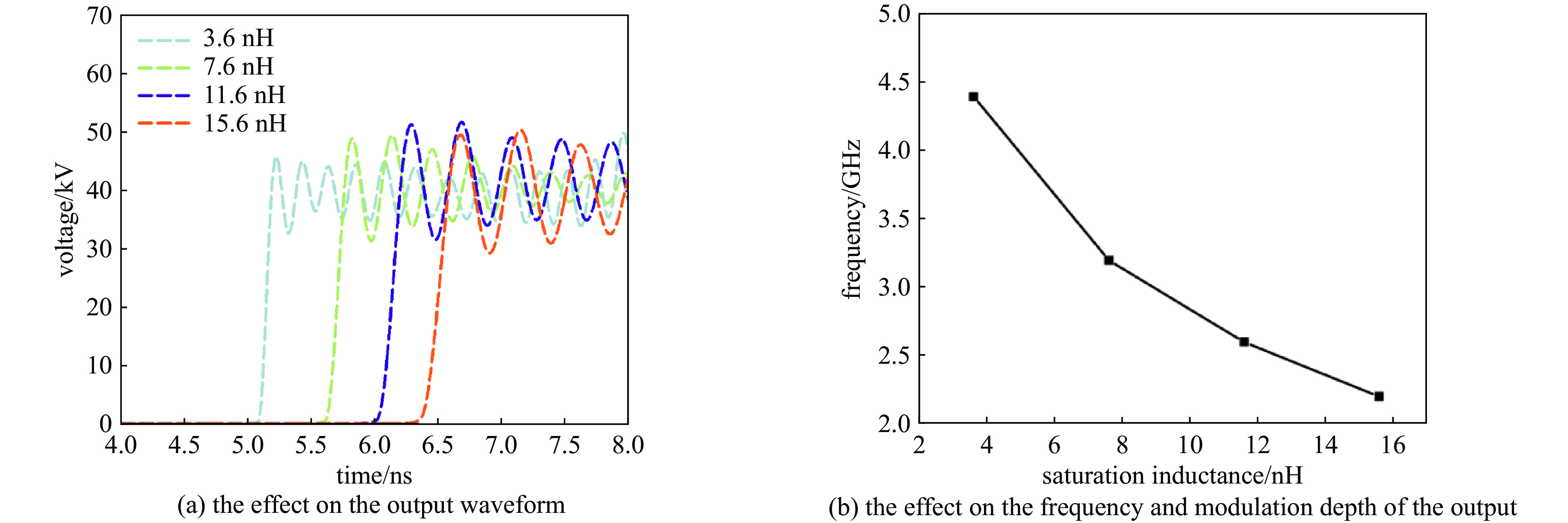 The results show that the saturation current and initial inductance of the nonlinear inductor have a decisive effect on the nonlinear characteristics of the circuit: when these two parameters are small, the leading edge of the output pulse is not fully steepened and is accompanied by oscillating waveforms; increasing them improves the steepening degree of the pulse leading edge, indicating a positive correlation between these two parameters and circuit nonlinearity. Additionally, enhanced nonlinearity of the equivalent circuit leads to a decrease in output frequency; saturation current, saturation inductance, initial inductance, and capacitance per stage all show a negative correlation with the output microwave frequency.