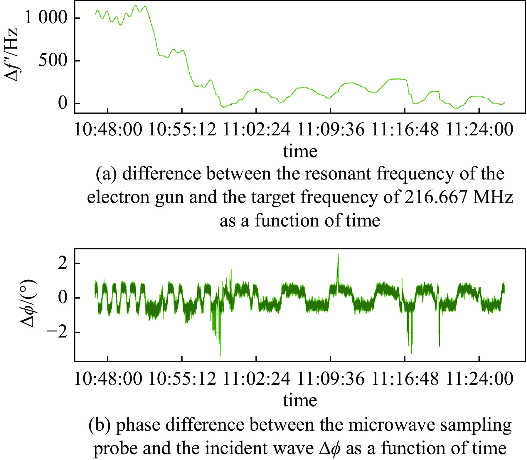 Using the proposed tuning method, the electron gun maintained resonance during high-power operation, with a resonant frequency deviation controlled at an RMS value of 94.2 Hz under full power. The amplitude stability at the microwave sampling port reached an RMS value of 0.0046 %, and the phase-locking accuracy achieved an RMS value of 0.0023 °. These results enabled long-term, stable full-power operation of the electron gun.