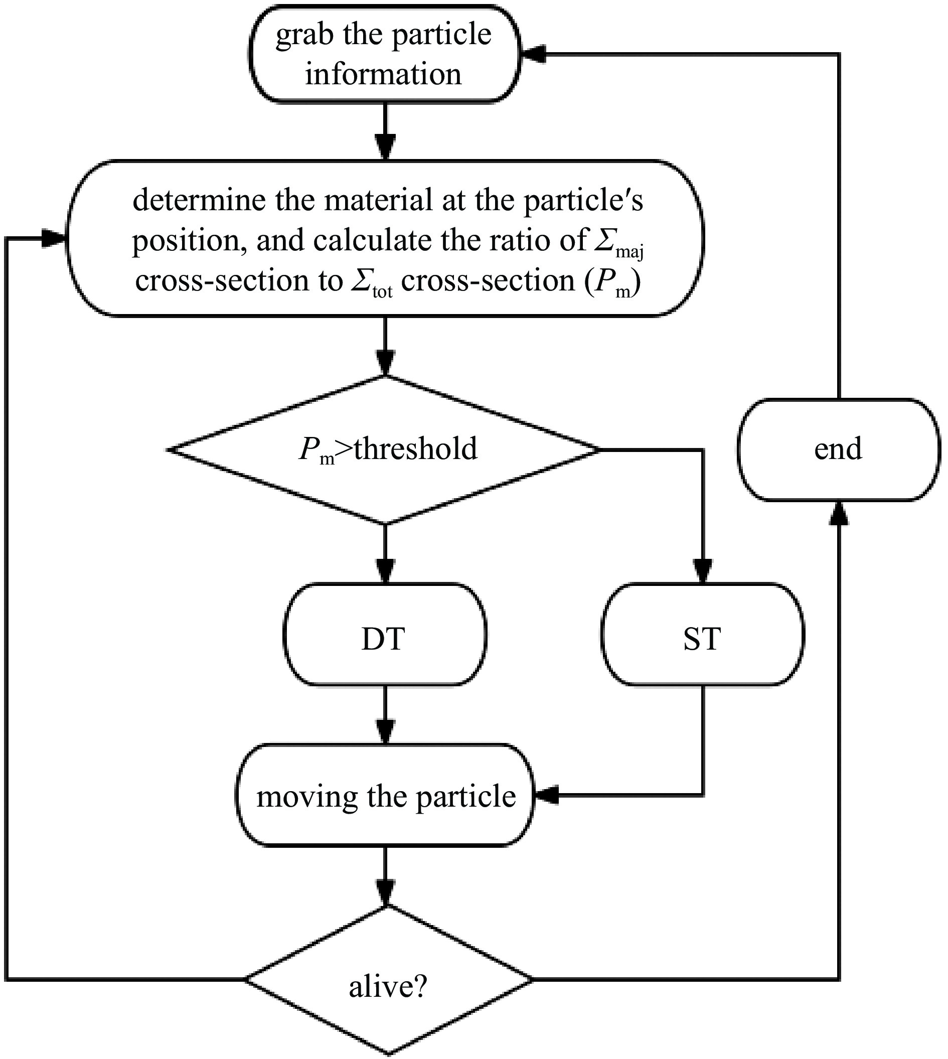 To optimize the particle energy search mechanism in Monte Carlo simulation and address the pain point of low efficiency in traditional search methods; Thirdly, based on the optimized search method, the delta-tracking algorithm is further improved to enhance the efficiency of core critical calculation and provide efficient and accurate calculation support for reactor design.
