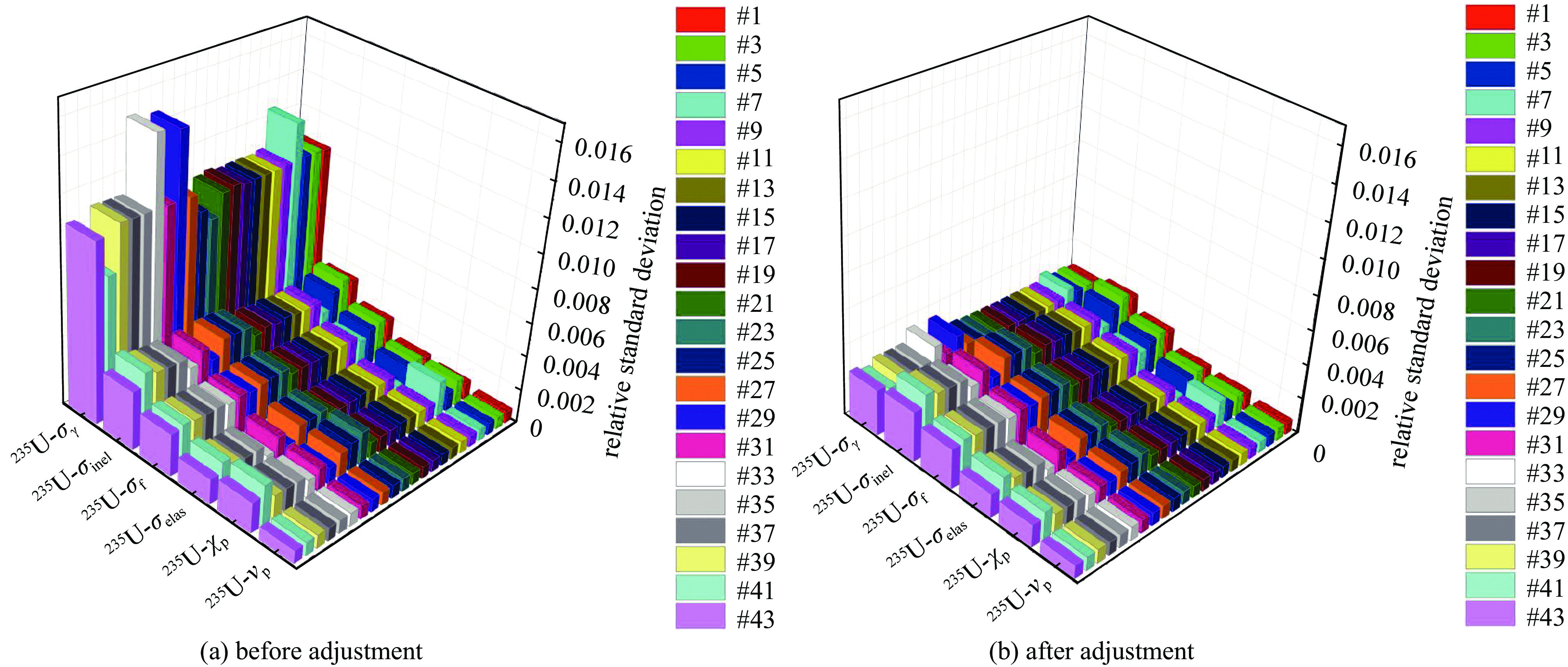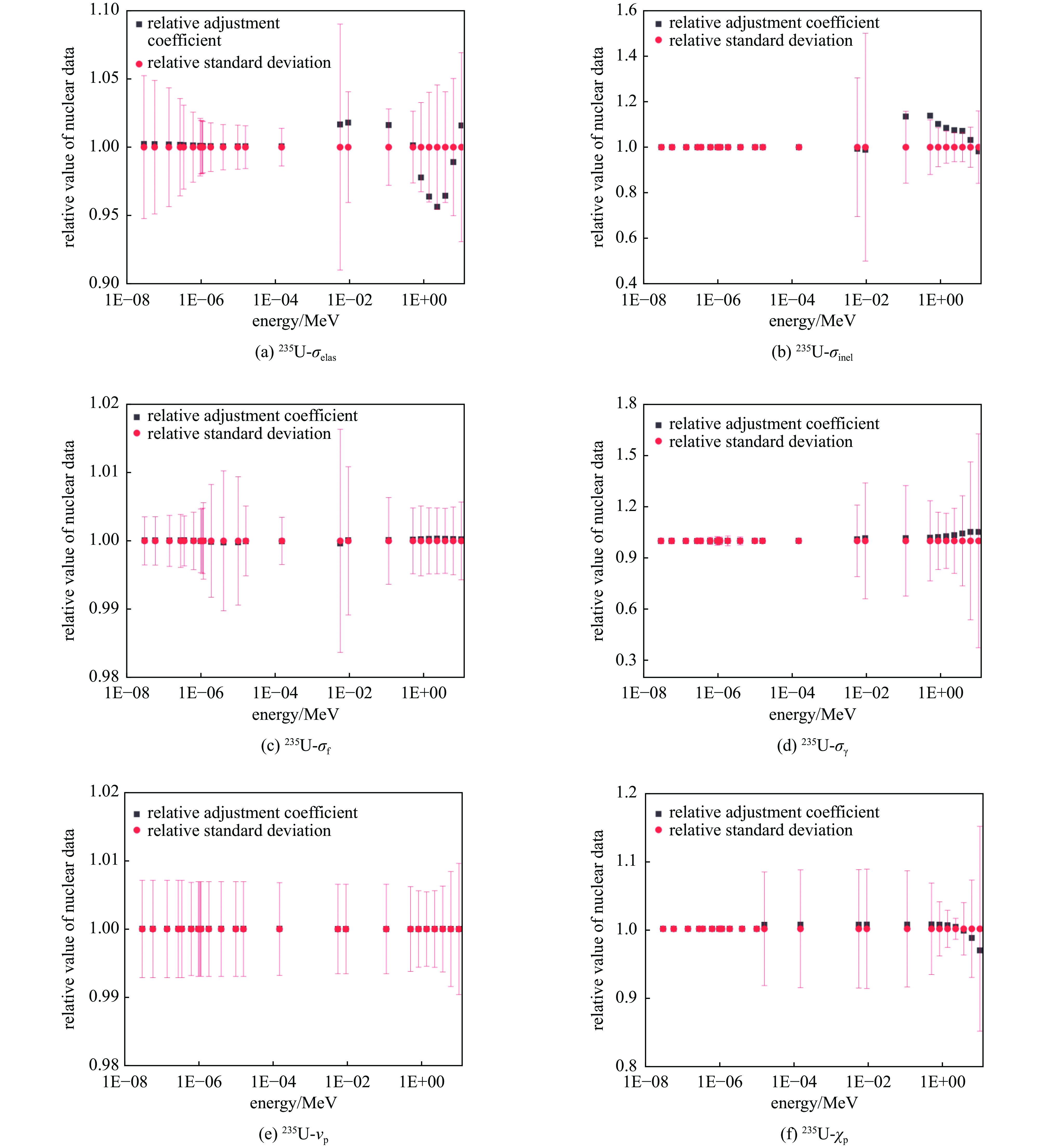 First, sensitivity analysis was used to determine the relationship between system responses and input parameter variations. Next, similarity analysis was applied to select experimental setups with high similarity at the neutron physics level. Finally, the generalized linear least squares algorithm was employed to minimize the error between computed and measured values, resulting in nuclear data adjustments.