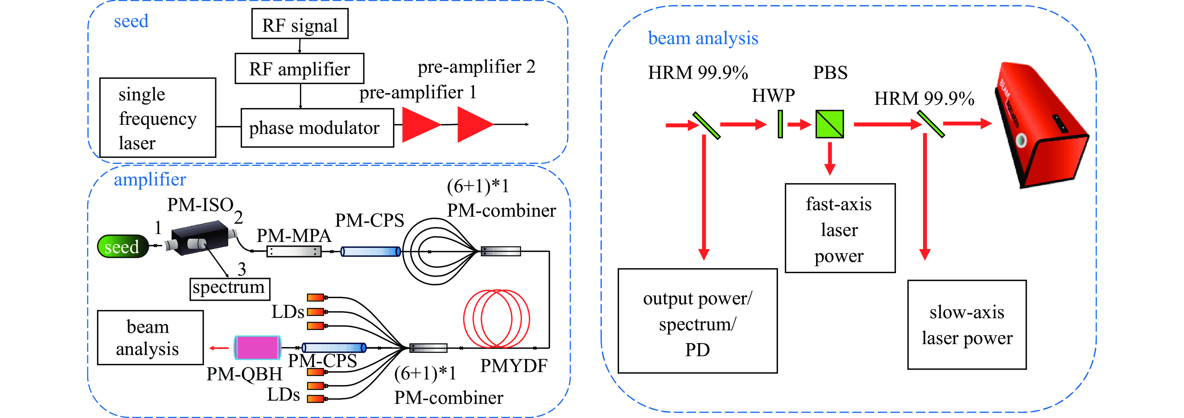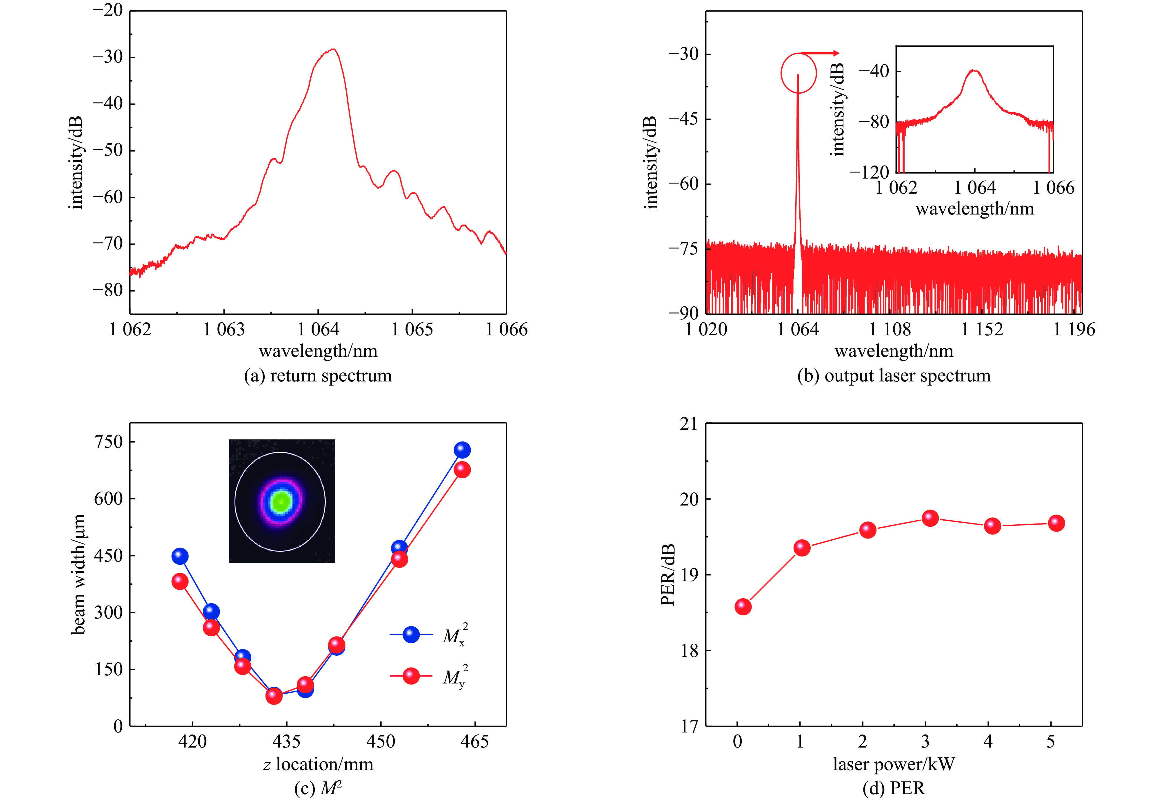 A white-noise radio frequency phase modulation scheme is implemented to broaden the seed laser spectrum into a Gaussian profile with 89 GHz full width at half maximum, enabling effective SBS suppression. A polarization-maintaining ytterbium-doped fiber (PMYDF) with low numerical aperture (~0.05), large mode area (~237 μm2), and high birefringence coefficient (4.23×10−4) is employed to simultaneously mitigate SBS and intermodal thermal coupling.