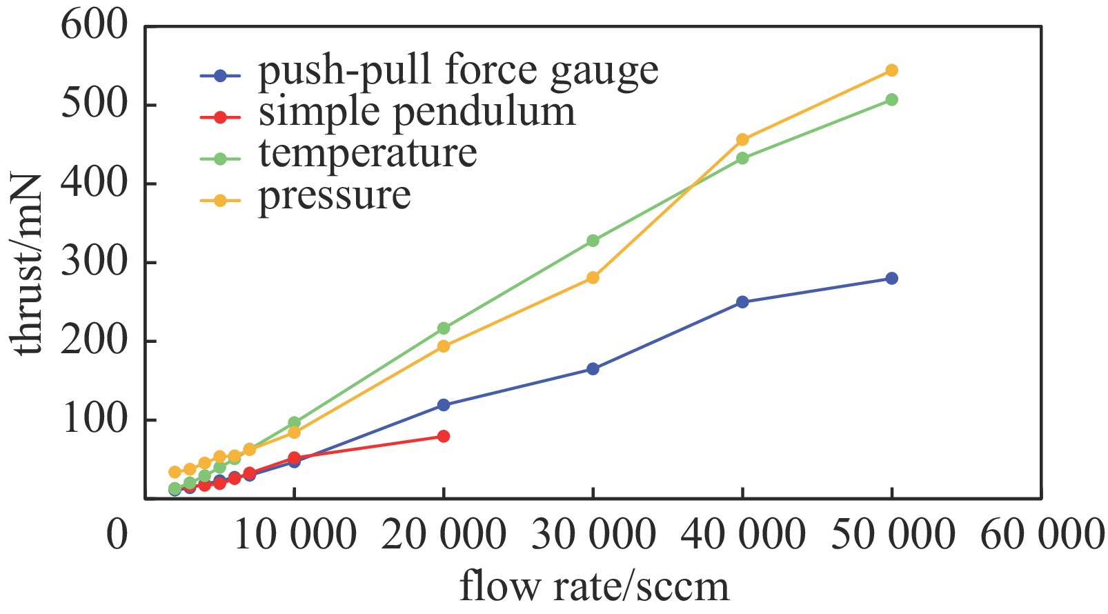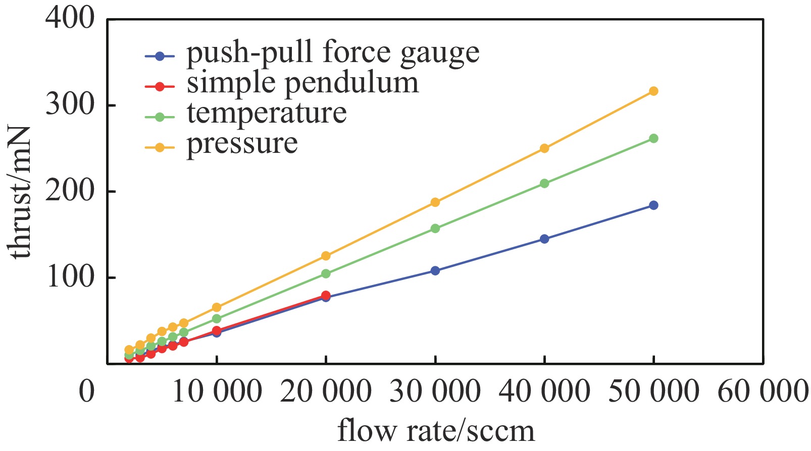 The four methods effectively solve the spatial constraint issue. Direct measurements (push-pull force gauge, pendulum) are effective, and indirect calculations (temperature, pressure) are feasible. The modular design is particularly suitable for CubeSats, providing reliable, low-cost, and easy-to-implement solutions for micro thruster performance verification and optimization, with promising application prospects.