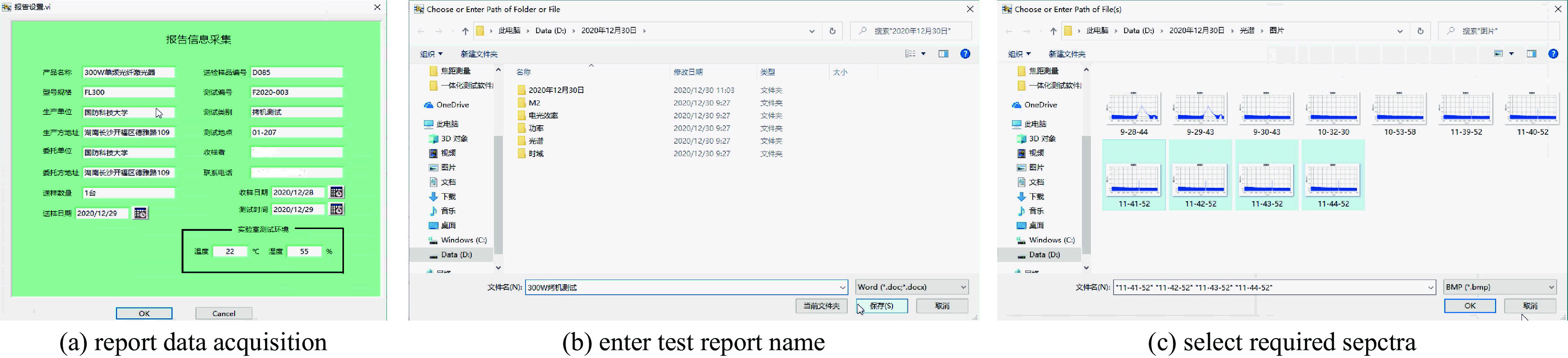 The system achieves the integrated integration of multi-module hardware testing equipment, as well as standardized interfaces and external connections, based on optical principle design and precision mechanical structure design. From the perspective of safe operation, an emergency shutdown device for abnormal working conditions is equipped to ensure the safety of the system and the laser under test during the testing process. The control software adopts LabVIEW multi-threading technology to realize the synchronous acquisition and real-time transmission of various parameters.