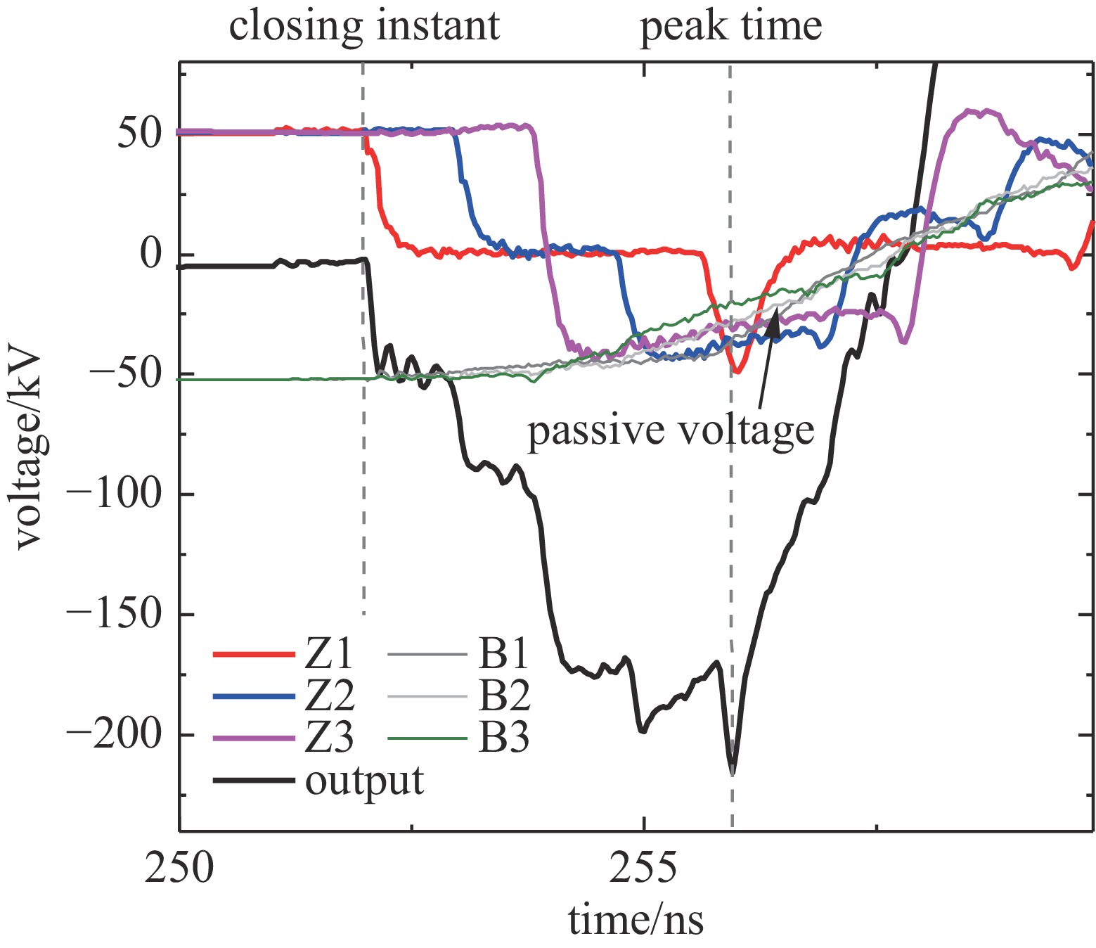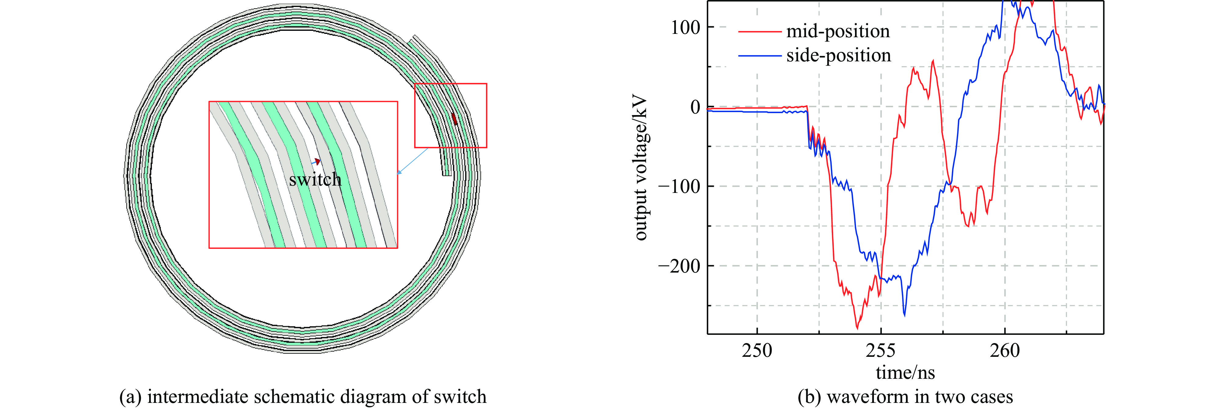 Theoretical analysis was conducted based on the specific parameters of the switch structure, focusing on key temporal characteristics influencing discharge behavior. Experimental validation was performed at the nominal breakdown voltage of 3 MV, utilizing diagnostic techniques to observe the development of discharge arcs across all electrode pairs.