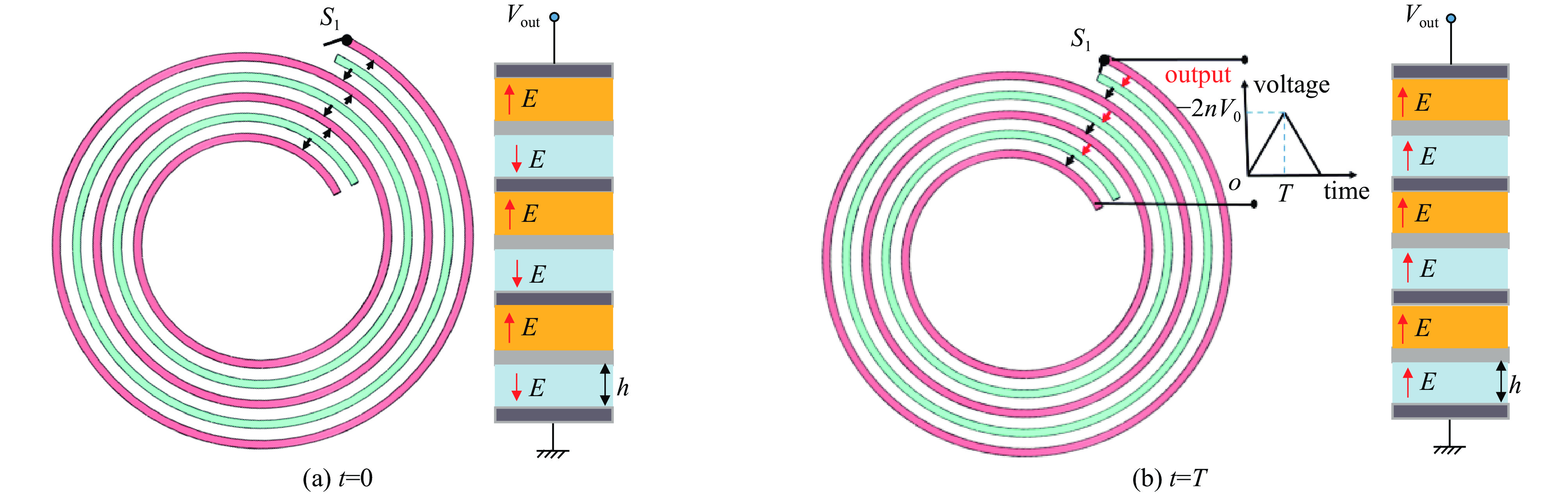 Furthermore, an in-depth analysis of the electromagnetic energy conversion process after switch closure revels that a high-efficiency spiral generator must achieve complete conversion of magnetic energy into electric field energy while ensuring the electric fields in the active and passive layers are oriented in the same direction, while is essential for optimal performance.