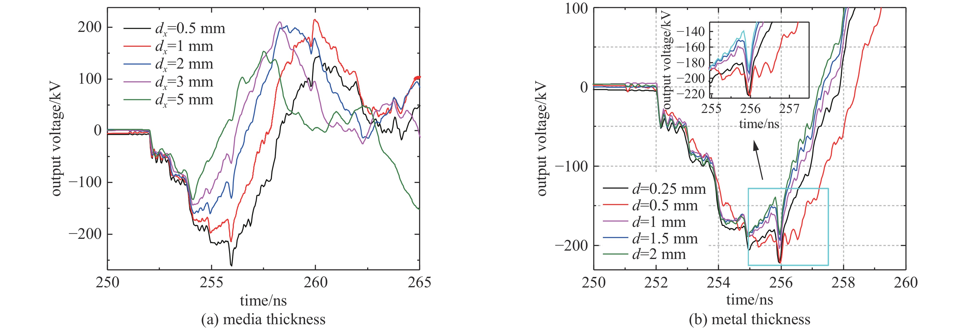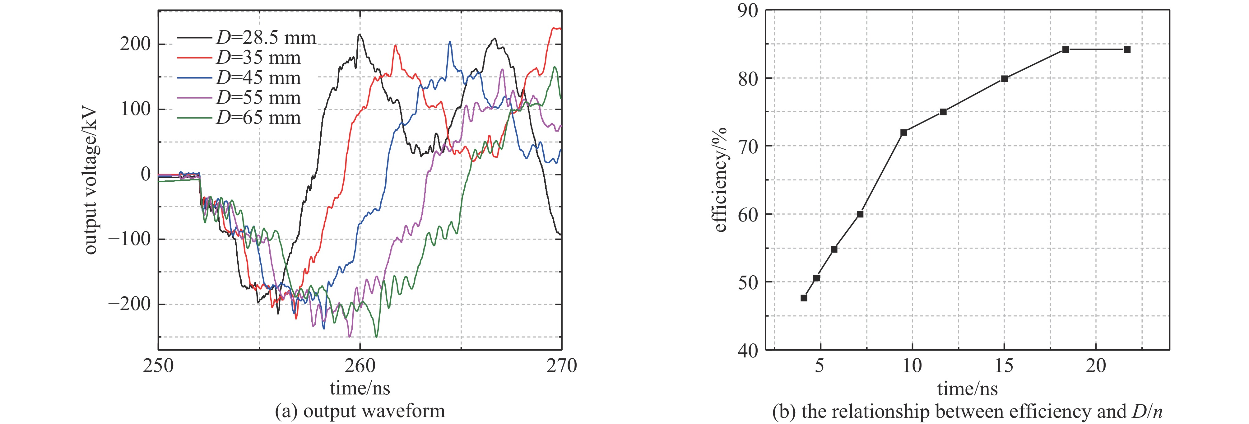 The simulation results demonstrate that utilizing a high-permeability magnetic core can significantly enhances voltage efficiency; increasing D/n ratio improves output efficiency; while a higher turn number n boosts output voltage amplitude, it concurrently reduces voltage efficiency; enlarging the average diameter D enhances voltage efficiency but at the cost of increased device volume; reducing dielectric thickness benefits efficiency, though excessively thin layers risk insulation breakdown; and positioning the switch at the middle of the coil, rather than at the end, substantially increases voltage efficiency.