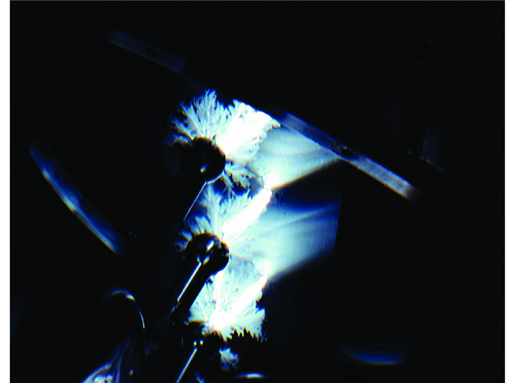 The calculated characteristic value for multi-channel formation was determined to be 8.6 ns, exceeding twice the measured switch jitter time of 3 ns, thereby satisfying the theoretical criterion. Observations confirmed that discharge arcs initiated nearly synchronously at the three sphere electrodes and propagated toward the plate electrodes, with complete multi-channel formation achieved within approximately 30 ns.