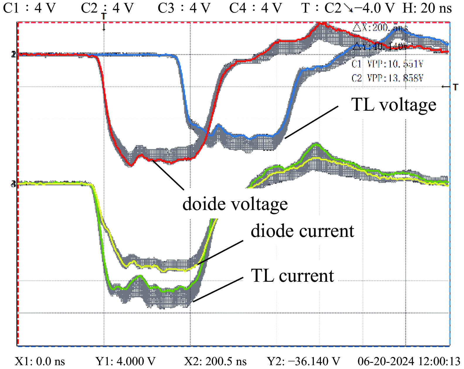The developed pulsed power driver delivers a peak output power of 20 GW, a pulse duration of 50 ns, a pulse flat-top fluctuation of less than 2%, and a maximum repetition rate of 50 Hz. The system has demonstrated stable operation over continuous one-minute durations, accumulating approximately 200 000 pulses with consistent performance. The driver’s overall dimensions are 4.0 m(L)×1.5 m (W)×1.5 m (H), with a total mass of approximately 5 metric tons.